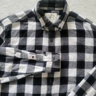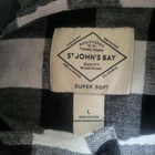 The St. John's Bay Men's Size L Button Down Shirt in Black White Checkered with Long Sleeve is a stylish and versatile addition to any man's wardrobe. Made from a comfortable cotton blend flannel fabric, this shirt features a classic collared neckline with a button-down style closure. The colorful checkered pattern in black and white adds a pop of color to your outfit, making it perfect for the winter, fall, or spring seasons. The regular fit and long sleeves make it a great choice for casual wear, whether you're dressing up or down.