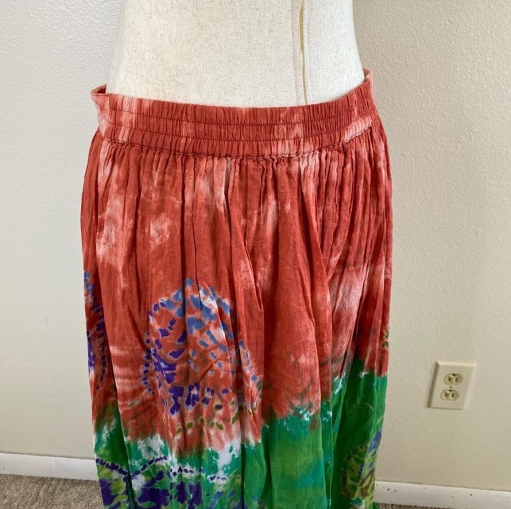 $ 1.59Linne by Gunda Japanese Denim Army Green Midi Skirt with Mickey Embellishment Women 30 Inch