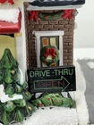 This St. Nicholas Square "The Donut Shop" Christmas village piece from 2011 is a large, asymmetrical, illuminated decoration featuring a whimsical donut shop design. It is suitable for a seasonal village display and includes LED lights with an A/C adapter. The hand-painted, American-style piece has a 3D effect and glitter accents. It is part of the St. Nicholas Square Village Collection and is designed for adults to enjoy in any room. Incredible detail and color ! Perfect pristine condition with all original packaging including light & cord and A/C Adapter
