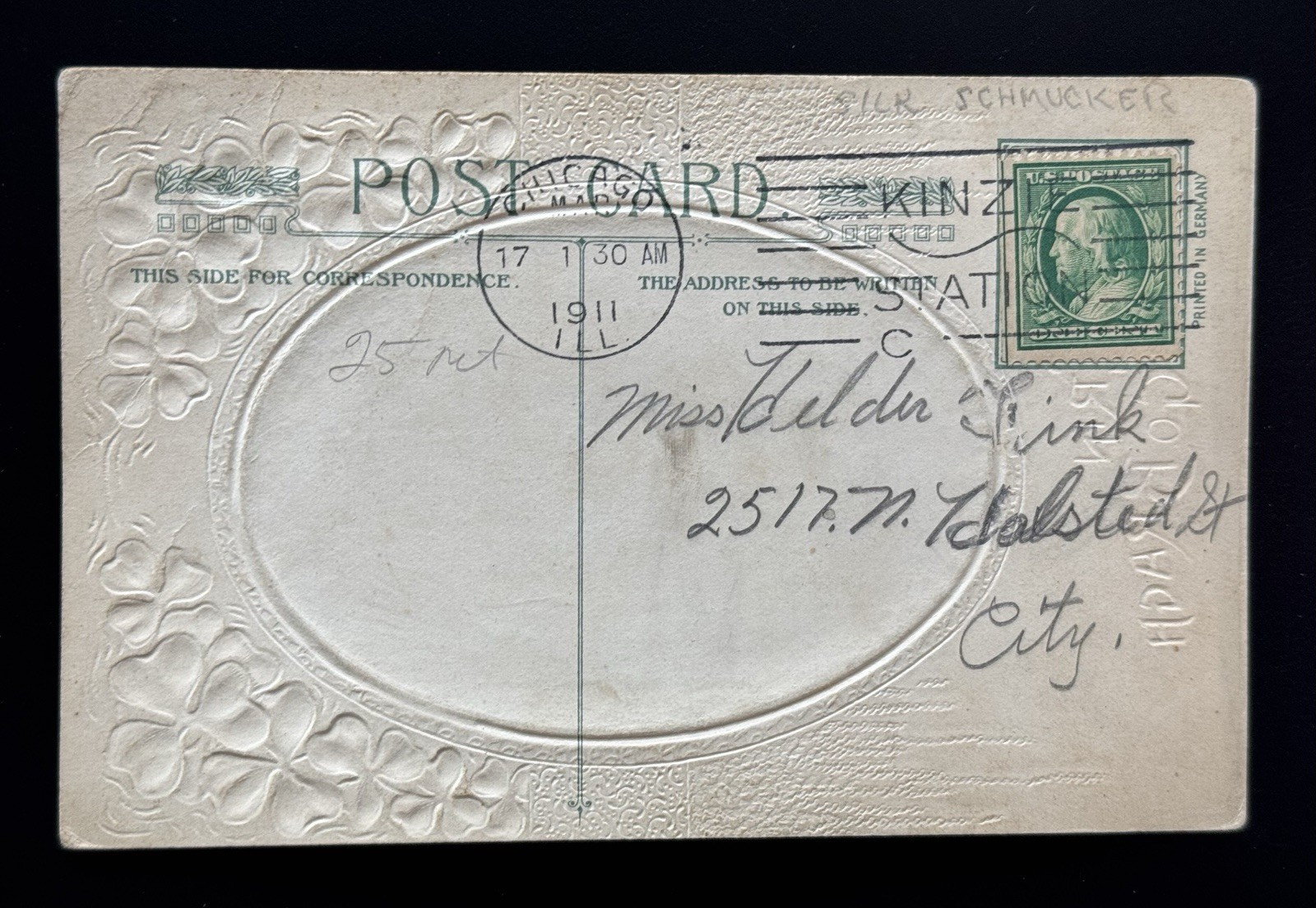 Era:Divided Back (c. 1907-1915)Year Manufactured:UnknownSigned:NoFeatures:EmbossedCountry/Region of Manufacture:UnknownUnit of Sale:Single UnitSize:Standard (5.5x3.5 in)Type:Vintage PostcardPostage Condition:PostedTheme:HolidaySubject:PigletOriginal/Licensed Reprint:OriginalArtist:N/AOccasion:St. Partick's Day