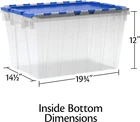 DURABLE STORAGE TOTES: The Akro-Mils 12 Gallon KeepBox is made from industrial-grade plastic; These storage bins withstand heavy use and the textured bottom ensures a no-slip grip, preventing unwanted movement during storage or transport STORAGE BINS WITH LIDS ATTACHED: The storage containers feature hinged lids to keep your items safe and secure and eliminate the need to search for lost lids; Steel hinge pins provide strength and durability; Padlock eyes on the lids accommodate zip ties CLEAR SIDES FOR VISIBILITY: Clear plastic storage totes make it easy to see what is inside; Use them for garages, attics, basements, sheds, RVs, sports equipment, fishing, boating, camping supplies, holiday decorations, craft rooms, or home office storage STACKING AND NESTING: Stacks with lids closed and nests with lids open, adding to storage efficiency; Handles are molded into the sides to make them easy to carry; These storage totes are a reliable choice for moving, shipping, or as a truck bed organizer DIMENSIONS: With dimensions of 21.5-Inch x 15.25-Inch x 12.5-Inch, these large storage bins are perfect for organizing a variety of items; Proudly made in the USA, this storage tote is versatile for all activities Product Description The Akro-Mils KeepBox 12 Gallon Plastic Storage Tote is a powerhouse of organization and efficiency for your storage needs. Designed for both home and professional use, this plastic storage container is a durable solution for those in search of reliable storage bins. Constructed with industrial-grade plastic, it stands as a robust alternative to flimsy storage options, ensuring longevity and resilience. The attached hinged lid is an ingenious feature that prevents loss and allows for seamless stacking when closed, or nesting when open, making it ideal for optimizing space in garages, attics, or office settings. The clear design of the storage container lets you easily identify contents, reducing the hassle of rummaging through your storage totes. Whether you're organizing camping supplies, storing seasonal clothing and decorations, or managing a craft room, the Akro-Mils KeepBox is engineered to handle it all. Its textured bottom provides a no-slip grip, adding a layer of security when moving bins around. Proudly made in the USA, this storage solution is perfect for those who value efficiency and quality. Ideal for use in various environments, from garages, closets, and RVs to offices, laundry rooms, and attics, this versatile storage bin is a must-have for those who seek to organize their space with reliable, large storage containers. From the Manufacturer The 66486 Keep Box is ideal for all household storage needs. Clear bottom allows instant identification of contents. Lids are attached with full-length steel hinge pins for durability. Ergonomic handles make carrying easy, even under a full load. Unique rib design prevents jamming when nested on store shelves. Nesting feature makes it easy to safely store any household item. Also nests to take up less storage space. Akro-Mils products save time and money by helping to increase material handling efficiency in virtually any industry. Our broad range of storage, organization and transport products are used to shorten assembly times, maintain accurate inventories, optimize storage space and improve parts protection. Our mission at Akro-Mils is a commitment to manufacturing innovative storage and material handling products of uncompromising quality at a fair price. We support this commitment with professional representation and consistent, superior service to meet the needs of our customers. For quality products backed by more than 60 years of reliable delivery and responsive customer service, we invite you to turn to the Akro-Mils advantage.