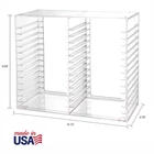 Clear CD rack keeps your favorite CDs in place. The clear design looks great on any entertainment center. Sort up to 30 standard jewel cases and 2 double jewel cases, stack additional units to increase the storage. Not just for the home, use in schools and offices to CD backups and games. This crystal-clear, -piece organizer cleans easily with mild soap and warm water. Proudly made in the USA. American made with high-quality, durable BPA-free clear plastic. Domestic production of this CD organizer provides you with the peace of mind that you're buying a product that contributed less carbon emissions to the atmosphere from creation to delivery than those produced overseas. Say goodbye to cluttered media room shelves or office desks with these stackable CD holders. Designed to maximize space efficiency, they allow you to neatly organize and your CD collection, freeing up valuable shelf or desk space. Each organizer easily accommodates up to 30 standard-sized jewel CD cases, including 2 double cases. Whether you're a music aficionado or a movie buff, you'll have plenty of room to your favorite CDs without compromising on space. These organizers stack securely with the help of four rubber feet on the bottom of each unit. This ensures stability and prevents sliding or toppling, keeping your CD collection safe and organized at all times. Measuring 10.5" W x 4.875" L x 8.625" H, these CD organizers strike the perfect balance between spaciousness and compactness. Their rectangular design fits seamlessly on media room shelves or office desks, adding a touch of organization to your space.