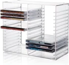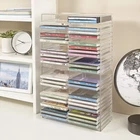 Stackable Clear Plastic CD Organizer with Rubber Feet | Rectangular Jewel Cases Holder Perfect for Theatre Room | Holds up to 30 CD Cases | Made in USA About this item American made with high-quality, durable BPA-free clear plastic . Domestic production of this CD organizer provides you with the peace of mind that you're buying a product that contributed less carbon emissions to the atmosphere from creation to delivery than those produced overseas. Say goodbye to cluttered media room shelves or office desks with these stackable CD holders . Designed to maximize space efficiency, they allow you to neatly organize and store your CD collection, freeing up valuable shelf or desk space. Each organizer easily accommodates up to 30 standard-sized jewel CD cases, including 2 double cases. Whether you're a music aficionado or a movie buff, you'll have plenty of room to store your favorite CDs without compromising on space. These organizers stack securely with the help of four rubber feet on the bottom of each unit. This ensures stability and prevents sliding or toppling, keeping your CD collection safe and organized at all times. Measuring 10.5" W x 4.875" L x 8.625" H, these CD organizers strike the perfect balance between spaciousness and compactness. Their rectangular design fits seamlessly on media room shelves or office desks, adding a touch of organization to your space.
