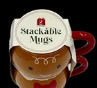 Stackable Gingerbread Mug Set A great addition to a Hot Cocoa bar or to display next to your Coffee Maker. Super cute! Keep or give as gifts :). Suitable for both hot or cold beverages. Microwave and dishwasher safe. Great For Soups, Chili, Oatmeal, Hot Cocoa, Coffee And More Mugs Are Made From Durable Earthenware Food Safe; Dishwasher And Microwave Safe The pictures show reflections, the mugs are new with no markings New inside the original packaging