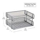 Keep your desk organized and clutter-free with this set of two metal mesh folders. Included are two sets of metal mesh folder trays that allow you to easily access the files and documents you are working on on your desk, keeping them organized and within reach. This set of folders is stackable and compact, which maximizes desktop space and provides more file storage space. You can use them individually or stack them. Purchase multiple sets of folders and add multiple layers for more storage space. Save valuable desktop space while keeping all your important files neatly organized in one convenient place. With this set of folders, you can easily access frequently referenced files and documents. The durable metal mesh construction is strong and durable, and it will last even with daily use. These stackable folders can easily store even heavy files and documents. The metal mesh design makes your desktop modern and elegant while also being practical and provides you with additional desktop storage space to keep your space neat and organized. Made with 100% lightweight steel mesh construction, these stackable trays are made to last with attention to detail and premium materials.
