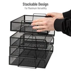 You may also like 4 Compartment Desktop Organizer Vertical File Storage Metal Office Accessory New 25.17 USD 26.49 USD Free shipping 5% off Four-Tier Stackable Desktop Organizer Enhance your productivity with this four-tier, stackable desktop organizer. Designed for letter-size papers, folders, and files, it keeps your essential documents within easy reach. The individual pieces can be stacked for convenient access, used separately for diverse storage needs, or placed in different locations, such as your office and home. Each piece is lightweight, portable, and easy to handle, with a combined weight of 3. 3 pounds (1. 5 kg). This organizer is versatile enough to store other office supplies like pencils, scissors, and rulers, helping to maintain a tidy workspace. It's also a practical addition to your home office or other areas like the kitchen. The see-through mesh construction ensures visibility, allowing you to quickly locate and retrieve what you need. Crafted from sturdy mesh metal, this organizer is built to withstand daily use. For a coordinated look, pair it with other pieces from the Network Collection. This four-tier organizer makes a fantastic gift for colleagues, graduates, new homeowners, or anyone seeking a stylish and practical solution to declutter their workspace. Ready to Use: No assembly required; simply unpack the document holders and stack or separate them as desired Durable and Easy to Clean: The strong mesh metal construction ensures durability, and cleaning is a breeze—just wipe it down with warm water, a soft cloth, and mild soap Dimensions: Each piece of this stackable desktop organizer measures 14 inches long x 9. 75 inches wide x 11. 25 inches tall (35. 56 x 24. 8 x 28. 58 cm) You may also like 4 Compartment Desktop Organizer Vertical File Storage Metal Office Accessory New 25.17 USD 26.49 USD Free shipping 5% off