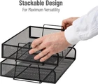 Sleek and modern design: This desktop organizer is designed to hold letter size documents, the metal mesh design adds a touch of class to your home or office decor Ready to use: No assembly required; simply unpack the document holders and stack or separate them as desired Organize your space: Whether it's letter sized documents, recipes, or mail, this organizer provides a convenient solution to keep everything in one place and easily accessible Durable and easy to clean: The strong mesh metal construction ensures durability, and cleaning is a breeze—just wipe it down with warm water, a soft cloth, and mild soap Dimensions: Each piece of this stackable desktop organizer measures 13.25" L x 9.75" W x 6.25" H (33.65 x 24.77 x 15.87 cm), providing ample space for your organizational needs