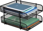 Flexible storage solution: Utilize the storage trays to declutter your desktop and conveniently store various items such as files, folders, magazines, and mail Efficient space-saving design: The two-tiered structure allows for stacking, maximizing your desk space and enabling better organization Easy accessibility: The modern metal mesh design provides visibility of your files and folders, ensuring quick and effortless retrieval Sturdy and reliable construction: The attached feet prevent the organizer from sliding, while the durable metal build ensures long-lasting use Perfect dimensions: With dimensions of 10.5 inches long x 13.25 inches wide x 7.5 inches tall (33.7 x 26.7 x 19.1 centimeters), this organizer fits perfectly on any desk, offering convenience and functionality Double the Organization: 2-Tier Stackable Metal Mesh Organizer Create a tidy and efficient workspace with this 2-tier stackable metal mesh organizer. Designed to eliminate clutter, this organizer offers an ideal solution for your desktop storage needs. Store and easily access essential documents and files, with the sleek design and neutral black color adding a touch of elegance to any office or desk decor. The two-tier structure allows for categorized organization of your documents, avoiding the typical chaos of a single pile on your desk. Despite its sturdy construction, this desktop organizer is incredibly lightweight at just 1.7 pounds (0.8 kg), making it easily portable should you need to relocate or rearrange your workspace. The organizer's durable metal mesh construction resists scratches, dents, and other potential damage, ensuring it remains in perfect shape even under heavy use. The attached rubber feet keep the organizer securely in place, and cleaning is as simple as a quick wipe with soap and water. This value pack includes two organizers, perfect for differentiating your home and professional offices, or consider gifting one to a college-bound student. Experience the joy of a clutter-free workspace with this 2-tier stackable metal mesh organizer.