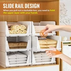 [Multi-Functional]The stackable storage bins are perfect for storing all kinds of items such as t-shirts, towels, clothes, toys, snacks, books, files, etc. Suitable for closet, dorm room, bathroom, kitchen, living room, office. Each drawers size is 16.6"L x 13.1"W x7.3"H. [Maximize Storage Space]The closet organizer is stackable which makes the home vertical space organized. Freely stack and adjust the quantities of closet storage to best fit your closet or storage space. The closet shelf organizer's foldable design allows it not to take up space when not in use, and also helps save more space. [Slide Rails Design]The slide rails design on the bottom makes it easy to pick items even if it is in most inner. No worry about messing up the stuff on top. It is especially a good solution for stacked clothes storage. [Sturdy]The closet organizer system is made of premium sturdy PP plastic, always keeping a good shape, for a long time using. The clothes organizer is easy to clean and only needs a simple wipe. [Pls Note]: The storage baskets cannot slide out completely like the drawer. If you need to pull it out, please support it against the wall, hold the drawer in place with one hand and only pull the top of the unit out with the other hand.