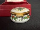 Staffordshire Enamel Trinket Box "CHRISTMAS 1983" ~ Comes w/Box L & M Landing Store Terms We make every attempt to show our listings as they truly are. If the pictures or descriptions are not clear, please contact me. Positive Feedback is very important to us. We strive to always have repeat customers that have a great experience shopping at our store. If for any reason you are not completely satisfied with your purchase, please contact me and we can resolve the issue together. Buy Now – Payment is due immediately ***PLEASE BE SURE YOUR SHIPPING ADDRESS IS UPDATED*** Auctions – Payment due within 3 Days We do offer combined shipping for multiple purchases. All overpaid shipping costs will be refunded at the time of shipping. We are a member of the Global Shipping Program in order to accommodate customers in other countries. SHIPPING TIME: Your item will be shipped the next business day after cleared payment has been received. You will receive shipping notification through eBay shipping or through PayPal shipping when your item is mailed. PLEASE be sure your shipping address is correct. Most of the items listed come from estate sales, auctions, garage sales, consignments and/or private sales. As such, I normally don't know the history of the item nor how it was stored.