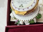 This exquisite Staffordshire Enamels Princess Diana Basket Chelsea Bonbonniere Trinket Box #60 of 260 is a must-have for collectors of British Royalty memorabilia. The beautiful box features detailed message. It is perfect for storing jewelry, trinkets, or other small items. The box is a unique addition to any collection and will make a wonderful gift for Royal enthusiasts. This collectible item is a testament to the enduring legacy of Princess Diana and her impact on British Royalty. has a few marks on the hinge.