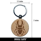 Stag Beetle Engraved Wood Round Keychain Tag Charm