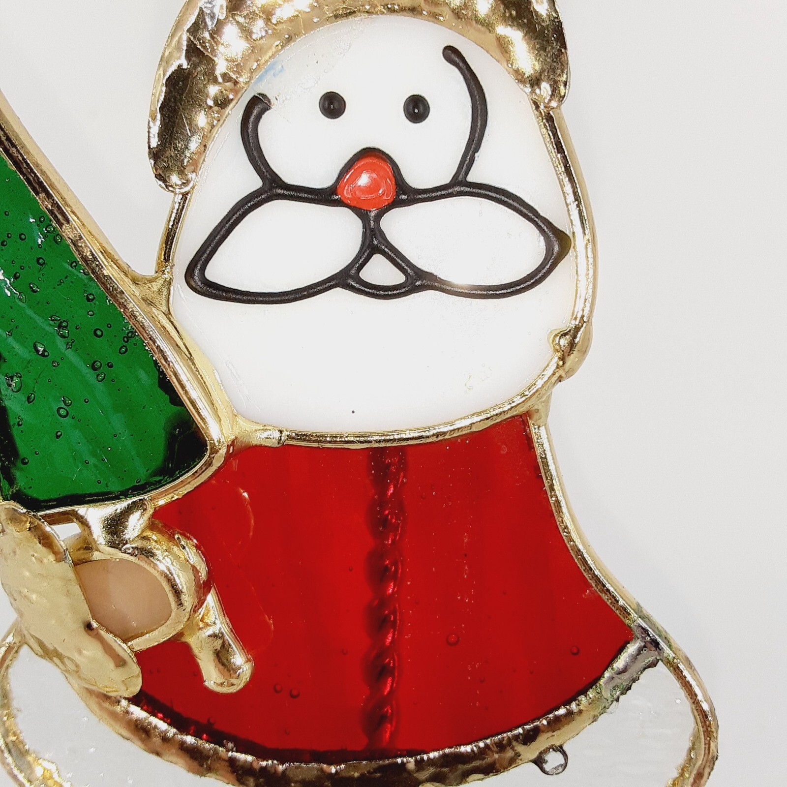 This adorable stained glass Santa ornament adds such festive charm to our tree! The painted details are vibrant, and even with minor wear, it has so much character. Love the vintage feel—it’s a unique piece that stands out. The seller’s transparency about condition and clear photos made buying worry-free. Highly recommend for anyone wanting a nostalgic holiday touch!