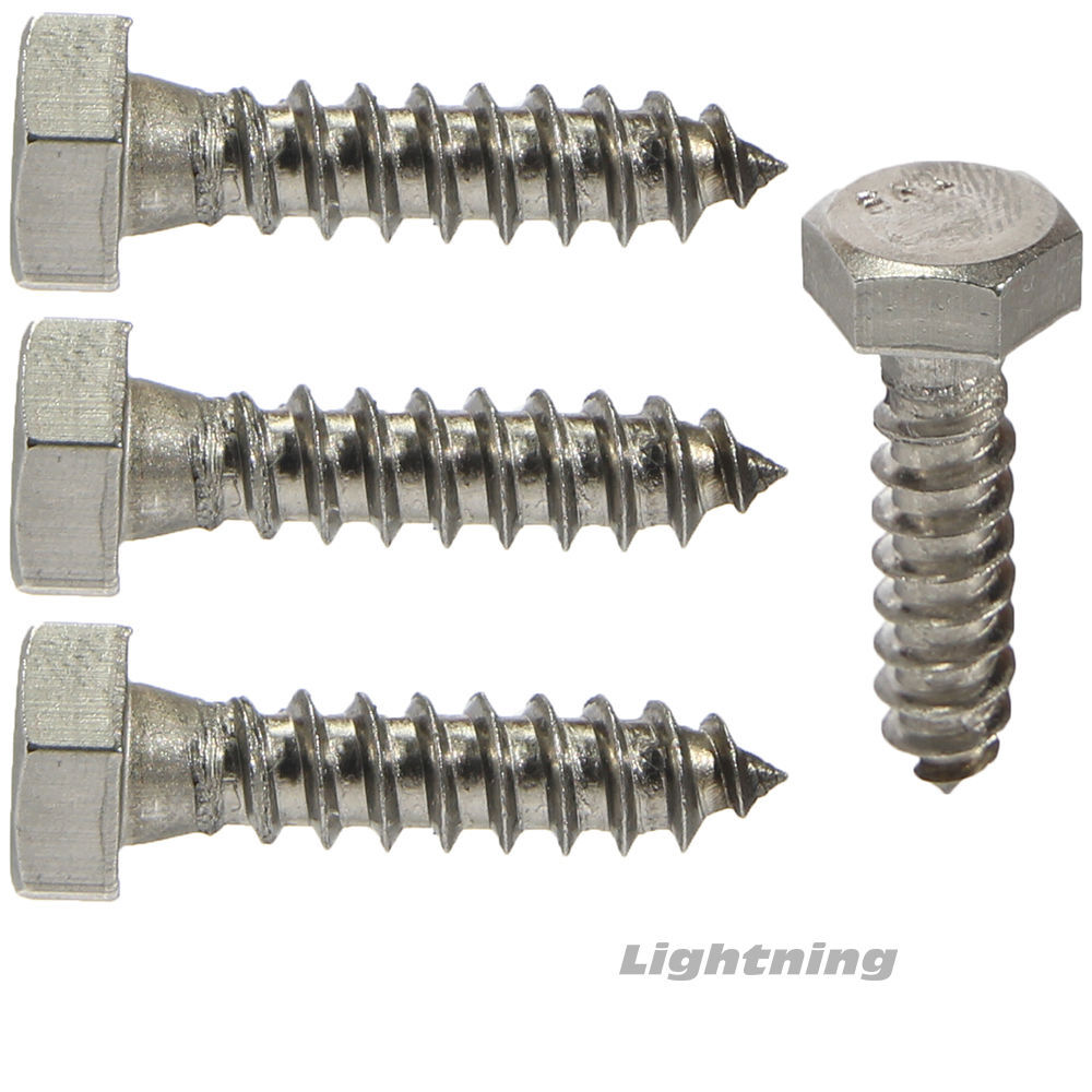 Lag Screws Hex Head Stainless Steel 1/4" x 1-1/4" Qty 250 Lag screws, also commonly reffered to as lag bolts, are heavy duty wood fasteners. Lag screws require a pilot hole pre drilled before installation and to be driven in with a ratchet due to their size. Thread Length The minimum thread length shall be equal to one-half the screw length plus 1/2″ or 6”, whichever is less. Above Mentioned is a General reference, If exact thread length is needed please inquire General Product Information Head Style : Hex Head Hex Head Width Flat to Flat : 7/16" (0.4375") Body Diameter : 1/4" (0.250") Length Measured Under Head : 1-1/4" Quantity of Fasteners In Package250 Material : 304 STAINLESS STEEL Shipping: All orders placed before 3:30 pm EST Will Ship Same Day Tracking is provided on ALL Orders Priority Mail Shipping service is offered at a discount of only $3.95 UPS Ground UPS Next Day Air is available, Please inquire for pricing Returns : ALL returns are accepted if returned within 60 days. Money Back or exchange guaranteed. NO Restocking Fees. For YOU, we constantly strive to find ways to improve our performance.