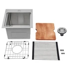 Specification Material: 304 Stainless Steel Color: Silver Style: Modern Process: Brushed Shape: Rectangular Mount Type: Topmount, Undermount, Flushmount Assembly Required: Yes Thickness: 100mm/0.39in Drain Hole Diameter: 8.9cm/3.5in Cutting Board Size: 33*28cm/13*11in Product Size: 38.1*38.1*24.5cm/15*15*9.6in Package Size: 43*43*27cm/16.93*16.93*10.63in Gross Weight: 8kg/17.64lbs Net Weight: 7.5kg/16.53lbs Package Included 1* Stainless Steel Kitchen Sink 1* Cutting Board 1* Bottom Rinse Grid 1* Strainer 1* Roll-up Dish Drying Rack All Accessories for Use Stainless Steel Drop-in Bar Sink Topmount Kitchen Sink Single Bowl 15 x 15 Inch Description Made of high-quality 304 stainless steel, this kitchen sink is exquisitely crafted, wear- resistant , and corrosion- resistant . Its enlarged and deepened sink not only alleviates the splashing problem but also increases space utilization for cleaning numerous cookwares. The design with a cutting board, bottom rinse grid, and roll-up dish drying rack allows you to wash and cut fruits and vegetables simultaneously, with which you can enjoy a more convenient life. Key Features Strong and Durable: Made of premium 304 stainless steel through the brushed process, it is corrosion and heat- resistant and will remain as good as new for a long time, even in the face of frequent daily use and all kinds of kitchen utensils collision. Space Optimization: The workstation sink is designed to hold the cutting board on a single track, maximizing the available space on the countertop. Large Capacity: Its large washing size ( 13*11in ) allows you to clean large amounts of plates, dishes, and pots, and wash fruits, and vegetables at one time without splashing, saving time. Life Assistant: This sink with a cutting board, bottom rinse grid, and roll-up dish drying rack cleverly combines washing and meal preparation functions, allowing you to enjoy a convenient life. Invisible and Beautiful: It supports three mount types: top mount, flush mount, and under mount, which will not affect the aesthetics when the sink is flush with the countertop, and the smooth lines and low-key silver-colored appearance can also add a touch of simplicity and elegance to the kitchen. Hassle-free Cleaning: The brushed surface is not easy to leave marks, you can remove surface dust and grease by wiping with a damp cloth and detergent (not included). User Friendly: The rubber mute mat can effectively reduce the noise generated by the faucet water release and the collision of dishes, creating a quiet kitchen environment. The anti-condensation coating effectively prevents excessive temperature differences and protects the cabinet from moisture. Rapid Drainage: The X-shaped water guidelines and enlarged 3.5-inch drain hole help drain water quickly. Customer Service: We aim to provide quality products and services. If you have any problems, please feel free to contact us. We will reply to you and solve the problem for you as soon as possible. Details Rounded Corners: They are not easy to leave hygiene blind spots, making it convenient for you to clean the sink. Bottom Rinse Grid: With protective covers, it can prevent scratches on the kitchen utensils and sink. Utensils can be placed on the rinse grid for fast drainage. Roll-up Dish Drying Rack: It facilitates you to quickly clean your cookware and drain the bowl quickly to prevent bacteria growth. Thoughtful Handles: Two curved handles on either side of the cutting board make it easy to reach and move. Application It can be widely used in homes, restaurants, laundries, basements, bars, kitchens, food trucks, dessert stores, coffee shops, hotels, garages, gardens, etc. for washing dishes and cutting vegetables and fruits. Specification Material: 304 Stainless Steel Color: Silver Style: Modern Process: Brushed Shape: Rectangular Mount Type: Topmount, Undermount, Flushmount Assembly Required: Yes Thickness: 100mm/0.39in Drain Hole Diameter: 8.9cm/3.5in Cutting Board Size: 33*28cm/13*11in Product Size: 38.1*38.1*24.5cm/15*15*9.6in Package Size: 43*43*27cm/16.93*16.93*10.63in Gross Weight: 8kg/17.64lbs Net Weight: 7.5kg/16.53lbs Package Included 1* Stainless Steel Kitchen Sink 1* Cutting Board 1* Bottom Rinse Grid 1* Strainer 1* Roll-up Dish Drying Rack All Accessories for Use Notes Please check the style and size before purchasing. Please do not scratch its surface with sharp objects to prolong its service life. If you want to get a better installation effect, we suggest you ask professional workers to install it. Please allow the slight color difference caused by the shooting light and 1-3cm error due to manual measurement and make sure you do not mind before ordering. Payment Delivery details Terms of sales About us Contact us Payment We accept ebay payment 。 Fees such as import duties, taxes are not included in the item price or shipping costs. These charges are the buyer's responsibility. Delivery details Shipping: 2-9 working days to: USA Terms of sales We maintain high standards of excellence and strive for hundred percent customer satisfaction. Feedback is very important to us. We hope that you contact us immediately before you give neutral or negative feedback, so that we can address your concerns. It is impossible to address issues if we do not know about them! About us Your satis faction is our ultimate goal. We work hard to earn your trust and future business. Our certified technicians have tested each item before shipping. The unit comes with 1 year limited warranty on all manufacturing defects. a) If you receive a defective item, you may return it or ask for a discount. Please contact us within 14 days after you receive the package. b) What you returned must be intact and in its original packaging as re? u. Customer is responsible for shipping costs of the returned item. c) We will cover the cost of shipping back t with the shipping rate indicated in the registration page. We will send you a new unit or refund the full payment you pai
