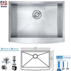Stainless Steel Kitchen Farmhouse 90°Zero Radius Single Bowl Apron Farm Sink 24" 18 Gauge/ 16 Gauge KSF 242010S Material: 304 Stainless Steel Apron Farm Sink Gauge:16 G / 18 G Finish:Lustrous Satin Attached With Noise Reduction Padding Overall Size:24"×20" Bowl Size:22×16" Depth:10" Drain Opening:3-1/2" WonderfulDay Store Policies We are dedicated and fully committed to provide each and every customer with the highest quality of listings as well as customer service. We accept Pay-Pal only. Payment must be received within 5 days from the time the auction/sale is finalized. Failure to meet with our store policies may result in a delay to handling and processing your order. There is no price protection. Purchasing this item means you agree to the above final price regardless of future price changes or promotion. PAYMENTS We accept the following methods of payment: Click the “Buy It Now” button at the top of this listing to immediately proceed to checkout. Payments can be processed on PayPal using: Visa, MasterCard, Discover, American Express credit cards or via E-Checks. Checks (E-Checks) thru paypal: this method will take some time to clear and your shipment may be delayed. Customer Service can be reached via eBay messaging or by clicking on the "Ask a Question" Button at the bottom of any of our listings. SHIPPING AND HANDLING Will ship by UPS Ground service , will email the tracking number once we send out the Goods; All items leave our warehouse within 1-2business day (Excluding Saturday, Sunday, and bank holidays) once payment is received. Delivery time may vary depending on carrier, you will receive a tracking number notification by email once your item has shipped. *** Please make sure to read carefully all details within the ad to avoid delays in shipping. RETURNS AND EXCHANGE We accept exchange and return within 30 days of original delivery date. All return and exchange must be in original condition and with original packaging, the product MUST NOT be worn or used. If you want to exchange item, you need to send the item back and make another purchase. Shipping charges for exchange items are responsible by the buyer. CONTACT US Communication is crucial to us! Please do not hesitate to contact us for any question or concern. All question and message will be answered within 24 hours . We do all that is within our powers to provide excellent customer service to all our buyers.