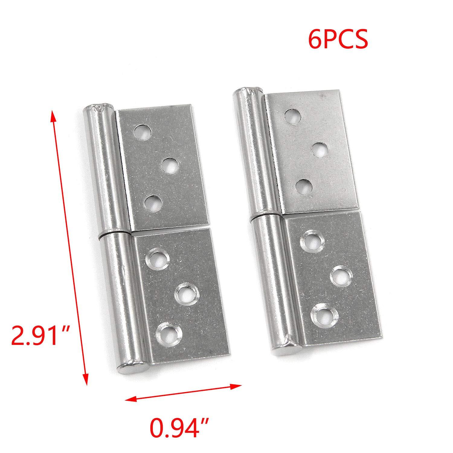 Product Specifications: Material:201 Stainless Steel Color:Silver Total Size:74x30mm/2.91"x0.94"(L*W) Thickness:1.2mm/0.047" Hole Diameter:4mm/0.16" Hole Distance:21.5mm/0.85";13mm/0.51" Bearing Diameter:8mm/0.31" Notes: All dimensions are measured manually and there may be small deviations. The color may have different as the difference display, Please understand. Package Content: 6 x Door Flag Hinges with Screws The detachable lift off hinges are widely used in various doors,cabinet,closet,wardrobe,window,gate,etc Made of premium quality 201 stainless steel, sturdy and long lasting 360 Degrees rotating design,can be used as right of left hand Total Size:74x30mm/2.91"x0.94"(L*W) Package Content:6 x Door Flag Hinges with Screws