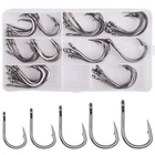 1) Model Number: 10827 2X Strong Live Bait Circle Hooks 2) Material: 420 Stainless Steel with black nickel. 3) Size: 1/0-12/0, 10pcs or 30pcs or 50pcs for each size. 4) Packaging: Plastic Bag 5) Saltwater fishing hook has an opti-angle straight needle point that is staying sharper longer, with barbs. Short shank fishing hook with needle point for ease of penetration 6) These stronger hooks fit saltwater and freshwater, short shank works great on live bait, less drag 7) Fit for live baiting, cubing, trolling jigging or bottom fishing. Good for tuna, wahoo, kingfish, marlin, sailfish and other gamefish 8) Combo Choice : 50pcs 10827 2/0-5/0 Hooks Set: 2/0: 20pcs,3/0: 10pcs, 4/0: 10pcs, 5/0: 10pcs 50pcs 10827 6/0-10/0 Hooks Set: 6/0: 10pcs,7/0: 10pcs, 8/0: 10pcs, 9/0: 10pcs, 10/0: 10pcs Packaging: plastic box Please choose the sizes and combos as you need.