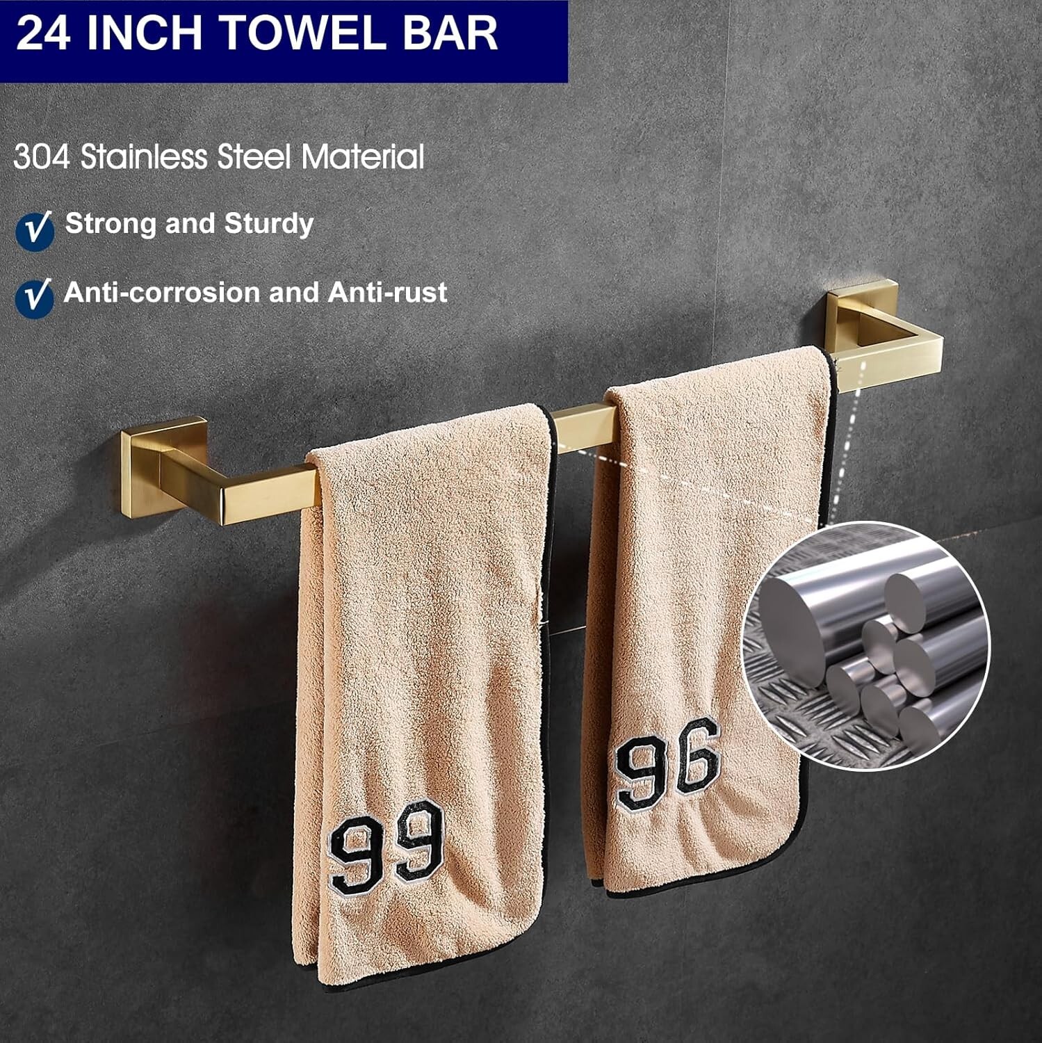 Stainless Steel 5-Piece Bathroom Accessories Set - Rust Resistant & Stylish < class="slides"> ‹ › ‹ › ‹ › ‹ › ‹ › ‹ › ‹ › ‹ › ‹ › ‹ › ‹ › Stainless Steel 5-Piece Bathroom Accessories Set Rust Resistant & Stylish MATERIAL Constructed from SUS304 stainless steel for exceptional rust and corrosion resistance. Matte black finish ensures a stunning aesthetic while resisting spots and scratches. Enjoy long-lasting durability, allowing you to spend less time and money on maintenance. 5-PIECE BATHROOM ACCESSORIES SET Includes a 24-inch towel bar, 10.3-inch hand towel holder, 6.3-inch toilet paper holder, and two robe hooks. MODERN & SAFE DESIGN Features clean lines and sturdy construction for everyday efficiency with style. Unique round shape and concealed mounting holes enhance the modern look of your bathroom. Chamfered edges protect you from accidental scratches, ensuring a safe experience. BEAUTIFUL APPEARANCE The modern round design, featuring a towel holder with a stable round base, adds elegance. Double bolt installation increases stability, while hidden mounting screws keep a clean appearance. EASY INSTALLATION Includes all necessary mounting accessories, stainless steel screws, and top-quality anchors. Screws are concealed for a clean, attractive look. Compatible with various finishes and can be mounted on any flat surface, including bathroom walls and wood doors. Why Choose Our Stainless Steel 5-Piece Bathroom Accessories Set? Transform your bathroom into a sanctuary of elegance and efficiency with our Stainless Steel 5-Piece Bathroom Accessories Set. Crafted from SUS304 stainless steel, this collection promises unrivaled durability and a stunning matte black finish that complements any décor. Each piece is designed with modern aesthetics and practical functionality in mind, ensuring your space remains stylish while providing everyday utility. Experience effortless installation with our comprehensive accessories, making it the perfect addition to any home. Invest in beauty and convenience—order your set today! Shipping Free & Fast Shipping - We offer free shipping to most of the USA with a normal delivery time of 3-7 days. However, due to the current situation, additional delivery time (up to 3 weeks) may be required for some items. Alternative Carriers - We may use alternative carriers (e.g. USPS, FedEx, UPS, etc.) to ensure your package arrives safely and on time. Due to the use of multiple carriers, we are unable to provide a tracking number automatically. Handling Time - Orders are processed and shipped within 1-2 business days of receiving cleared payment. Shipping Restrictions - Shipping to Alaska, Hawaii, Puerto Rico, Guam, and other US territories may incur shipping charges or delivery restrictions. Please contact us before ordering, or your order can be refunded/cancelled. State Restrictions - There may be restrictions based on your state of purchase. For example, certain items may not be shipped to California due to state regulations. Contact for Tracking Updates - If you require tracking updates or have any concerns about the delivery of your order, please feel free to contact us, and we will be happy to assist you. Return 30-Day Hassle-Free Returns - We want you to be completely satisfied with your purchase. If you are not, you can return the item within 30 days of receiving it for a full refund or exchange. Easy Return Process - To start a return, simply contact us and we will provide you with a prepaid return shipping label and detailed instructions. Restocking Fee - There are no restocking fees for returns. However, the buyer is responsible for return shipping costs if the return is not due to a seller's error. Refund Processing Time - Refunds will be processed within 5 business days of receiving the returned item in its condition. Payment We accept all major credit cards, PayPal, and Apple Pay for your convenience. Your payment information is secure and encrypted to ensure a safe and seamless transaction. Please complete your payment within 3 days of purchase to avoid any delays in shipping. Feedback Your feedback is extremely important to us. We strive to provide the best products and customer service possible. If you are satisfied with your purchase, please take a moment to leave us a positive review. If you have any concerns or issues with your order, please contact us before leaving negative feedback. We are committed to resolving any problems and ensuring your satisfaction. Contact Us If you have any questions or concerns, please feel free to out to our customer support team. You can contact us through the eBay messaging system. We are available Monday to Friday, 9:00 am to 5:00 pm EST, and we will do our best to respond to your inquiry within 24 hours. Buy it now and enjoy a pleasant shopping experience! Size: 23.6-Inch Towel Bar Frame Color: Brushed Gold Frame Finish: Brushed Frame Material: Stainless Steel Installation: Screw-in Item Depth: 6.7 inches Item Weight: 1.38 kg Number in Pack: 5 Number of Items in Set: 5 Unit Quantity: 1.38 Material: Stainless Steel,Wood,SUS304 Stainless Steel Room: Bathroom Set Includes: Bath Rack,Toilet Paper Holder,Towel Ring,Towel Set,Towel Bar,Hand Towel Holder,Robe Hooks Department: Adults Features: Anti-Slip,Smooth,Rust Resistant,Corrosion Resistant,Easy Installation Care Instructions: Not Specified Mounting: Screw-in Color: Brushed Gold Type: Accessory Set Style: Modern Finish: Brushed Shape: Round
