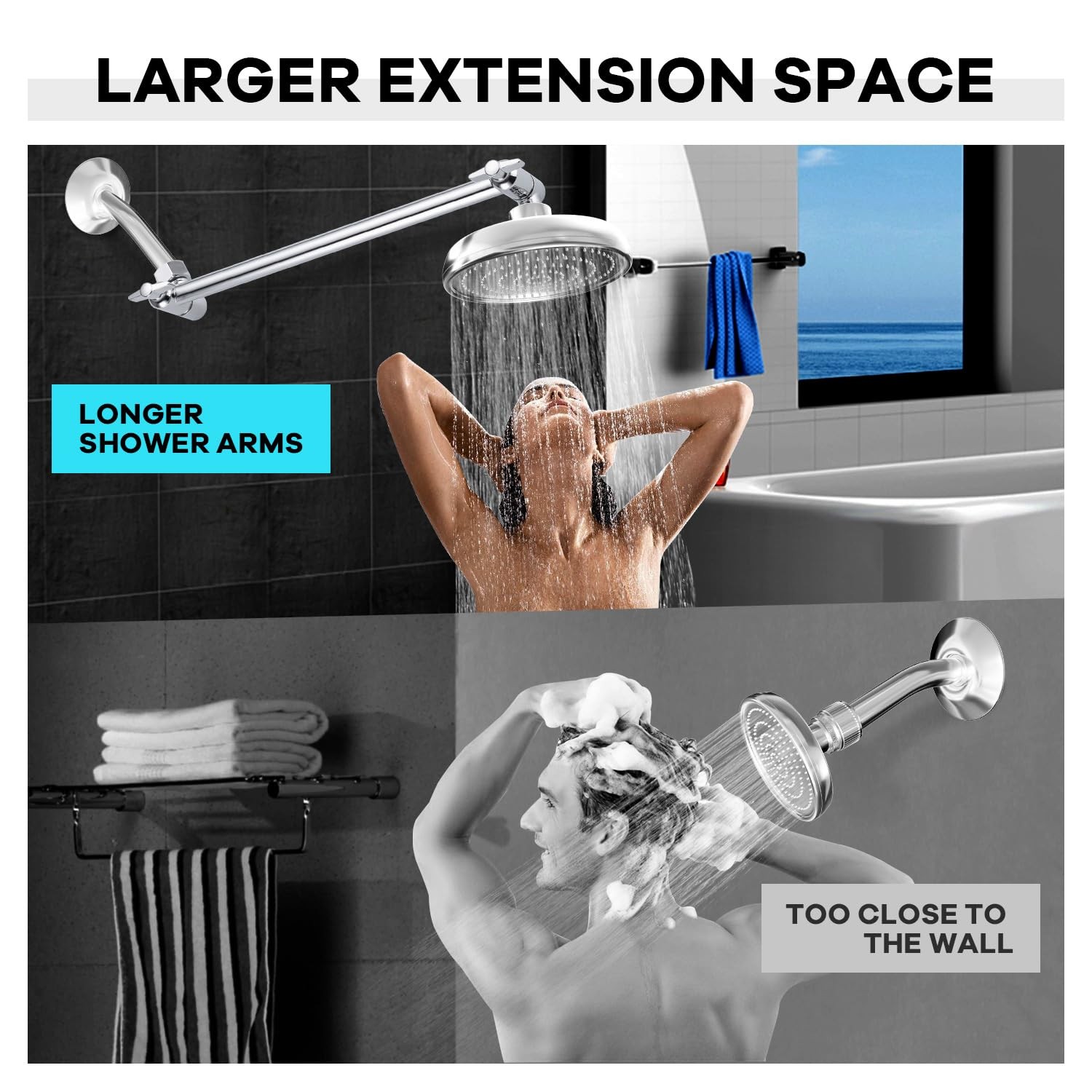 The Set Includes: 1 PCS chrome plated brass adjustment arm 1 PCS pipeline tape High Quality Products: Made of high-quality brass, it has the characteristics of rust prevention and not easy to break Adopting high-quality electroplating technology, the chrome plated finish not only prevents rust but also maintains the cleanliness of the bathroom, enhancing its aesthetic appeal Can Solve Your Problem: The shower area is too close to the wall, resulting in limited space The shower room cannot be fixed in place Can be connected to your existing showerhead, handheld showerhead, showerhead shower The adjustable arm has gears that can effectively secure the showerhead The Set Includes: 1 PCS chrome plated brass adjustment arm 1 PCS pipeline tape High Quality Products: Made of high-quality brass, it has the characteristics of rust prevention and not easy to break Adopting high-quality electroplating technology, the chrome plated finish not only prevents rust but also maintains the cleanliness of the bathroom, enhancing its aesthetic appeal Can Solve Your Problem: The shower area is too close to the wall, resulting in limited space The shower room cannot be fixed in place Can be connected to your existing showerhead, handheld showerhead, showerhead shower The adjustable arm has gears that can effectively secure the showerhead Adjustable Shower Arm: This shower arm has a rotating bend for maximum shower coverage High Quality Surface Treatment: Using chrome plating process, it will not fade or lose luster over time, and is easy to clean. Enhance the beauty of the bathroom Stainless Steel: This adjustable shower arm is made of Stainless Steel and features rust prevention and resistance to breakage, allowing you to easily secure your fixed shower head as you wish Easy to Adjust: The height and angle of the shower arm can be easily adjusted to meet everyone's needs. The shower adjustment arm with G1/2 thread size allows you to pair with any shower nozzle on the market without any problems Easy Installation: No need for plumbers or extensive tools, universal 1/2-inch NPT thread, suitable for standard shower arms and showerheads. Comes with free PTFE tape to prevent leakage