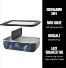 About this item BENTO BOX: Upgrade your meal prep with the Bento Box. Features a removable divider and leakproof see-through lid. Sleek and beautifully crafted. Dishwasher safe. EASY ORGANIZATION: Includes a removable tray divider for organizing your meals. Can be customized to fit one large entree or one smaller entree and a side or snacks. LEAKPROOF: A see-through lid ensures no spill or leaks, while the lightweight, low profile is ideal for easy storage and carrying, fitting perfectly into your backpack or bag. WORRY-FREE EATS: The Bento Box is made from 18/8, food-grade stainless. BPA/BPS-free and reusable. Fridge and freezer-friendly. Compliant with California Prop 65 regulations. SUSTAINABILITY WITHOUT COMPROMISE: You won't have to compromise fashion and functionality to live more sustainably with our sleek, beautifully crafted, built to last products. Product Description Upgrade your meal prep with the Bento Box. Featuring a spacious interior with removable tray divider for organizing, it can be customized to fit one large entree or one smaller entree and a side or snacks. A see-through lid ensures no spill or leaks, while the lightweight, low profile is ideal for easy storage and carrying, fitting perfectly into your backpack or bag.