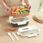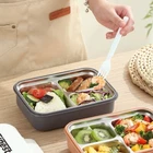 VERSATILE COMPARTMENTS: Keep your meals fresh and separate with the Bento Box Lunch Box, featuring three robust stainless steel compartments. Provided utensils and sauce jar. Perfect for portioning your main course, sides, and snacks without the risk of mingling flavors. PREMIUM STAINLESS STEEL CONSTRUCTION: Crafted with high-quality stainless steel, our Bento Box is not only durable but also resistant to corrosion and rust, ensuring a long-lasting addition to your meal prep essentials. COMPLETE MEAL MANAGEMENT: This lunch box is more than just a container! It includes a convenient sauce jar for your dips or dressings and a set of utensils, making mealtime effortless no matter where you are. LARGE CAPACITY: Offering a substantial 900 ML capacity, this lunch box comfortably holds a full meal, while still being compact enough to fit into your bag or backpack for easy transport. MICROWAVE AND DISHWASHER SAFE : Designed for convenience, this lunch box is microwave safe for quick heating and dishwasher safe for hassle-free cleaning. Enjoy both warm meals and easy clean-up. MODERN AND SLEEK DESIGN: With its sleek stainless steel finish, the Bento Box looks as good as it functions. It's the perfect fusion of style and practicality, making it an ideal choice for everyone. LEAK-RESISTANT FEATURES: Keep your bag mess-free! The tight-sealing lids prevent leaks and spills, so you can carry sauces and liquid-y foods without worry.