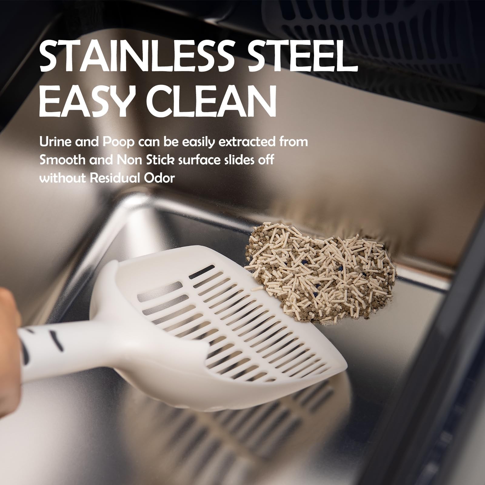 Package List : a)Stainless Steel Cat Litter Box with Lid b) Cat litter scoop 【Top Entry】The top entry cat litter box stainless steel means more privacy for your cat and less litter spillage. It also functions to keep other pets out of your cat's business. Attention : It’s ideal for cats under 12 lbs 【8" Deep Stainless Steel Litter Box for High Peeing Cat 】The stainless steel litter box high sides and totally 16" high can solve the problems that the cats urine and litter leaks to the floor. It never absorbs odors and stains, not rusting, non-sticky bottom 【Slot Design for Filtering Litter】The lid with many slots and grooves, acts as a litter mat on the top, will filter any litter of your cat's paws, just help the rest litter fall back into the litter box where it belongs 【Special Buckle Design】top entry stainless steel litter box with lid equiped the buckle to make the top lid and stainless steel litter box connection more stable, so even if you have a naughty cat, you don't have to worry about the top lid falling off because of the cat jumping 【Sturdy Metal Cat Litter Scoop】Large and heavy duty , a worthwhile metal scoop to have
