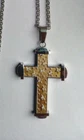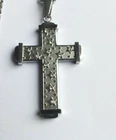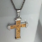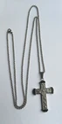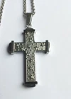 Stainless steel cross necklace featuring stars set with clear cubic zirconia stones. Brand new. Pendant measures 4.5 cm x 3 cm. Chain length 80 cm. Chain fastens with a parrot clasp. Cross pendant available in gold or silver. A lovely long length necklace.