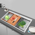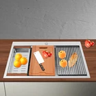Specification Style: Modern Color: Silver Shape: Rectangular Material: 304 Stainless Steel, 201 Stainless Steel, Rubber Surface Treatment: Brushed and PVD Installation Type: Topmount, Flushmount Number of Bowls: 2 Gross Weight: 25kg/55.12lbs Net Weight: 23.75kg/52.36lbs Package Size: 87*58*28cm/34.25*22.83*11.02in Product Size: 83.8*55.88*22.86cm/33*22*9 in Each Bowl Size: 45.72*38.1*22.86cm/18*15*9in Package Included 1* Double-Bowl Kitchen Sink 1* Cutting Board 1* Roll-up Rack 1* Drain Basket 2* Bottom Grids Other Accessories for Assembly welcome to my store! Description What if there is not enough space in the kitchen sink? What do you do if the sink is always clogged and can't be cleaned all the time? Then I suggest taking a look at our double-bowl kitchen sink with excellent material and easy cleaning features, which can easily solve the above problems and help you to create a more tidy kitchen. Key Features Last and Durable: Made of 304 stainless steel, and 201 stainless steel with brushed and PVD processes, it is rustproof , and can resist corrosion, impact, and deformation, so it can remain beautiful and practical for a long time. Thoughtful Design: The X-shaped water guiding line can guide water flow and form vortices to achieve rapid drainage. The anti-condensation coating effectively prevents excessive temperature differences and protects the cabinet from moisture. I t is equipped with sound insulating pads, which can effectively reduce the noise generated by the faucet water release and the collision of dishes, creating a quiet kitchen environment. Kitchen Assistant: Our product comes with a cutting board for easy vegetable cutting. In addition, the roll-up rack can help drain your dishes, the drain basket is beneficial for draining vegetables and fruits, and two bottom grids can effectively protect the sink base. Large Capacity: A large and deep (9-inch) sink with two bowls can hold a large amount of dishes, making you more comfortable and efficient when washing. It is a great helper for you to clean dishes or prepare food. Easy to Clean: The smooth surface, simple construction, and R0 round corner design that does not easily harbor dirt make the sink easy to rinse with clean water. Complete Accessories: It comes with a sink, a cutting board, a roll-up rack, a drain basket, two bottom grids, etc. to meet your various needs at once and also save you money. Quality Service: We stand behind all our guests and look forward to assisting you with your purchase. It is our pleasure to answer your confusion and questions. The end of the story between us is definitely not "we sell and you buy" Details Filter Basket: The filter basket intercepts food residue for easy handling and prevents your pipeline from clogging. Tier Track: It allows you to easily place and move the cutting board, roll-up rack, and drain basket, converting your sink to a workstation and providing you with more space. Application This product can be widely used at homes, restaurants, bars, hotels, cafes, milk tea shops, school canteens, dessert shops, cafeterias, garages, clean rooms, and any other commercial places for manual cleaning of food, fruits, vegetables, dishes, etc. Specification Style: Modern Color: Silver Shape: Rectangular Material: 304 Stainless Steel, 201 Stainless Steel, Rubber Surface Treatment: Brushed and PVD Installation Type: Topmount, Flushmount Number of Bowls: 2 Gross Weight: 25kg/55.12lbs Net Weight: 23.75kg/52.36lbs Package Size: 87*58*28cm/34.25*22.83*11.02in Product Size: 83.8*55.88*22.86cm/ 33*22*9 in Each Bowl Size: 45.72*38.1*22.86cm/18*15*9in Package Included 1* Double-Bowl Kitchen Sink 1* Cutting Board 1* Roll-up Rack 1* Drain Basket 2* Bottom Grids Other Accessories for Assembly Notes Please check the size carefully before ordering. Please note that this product does not include a faucet. Please do not scratch its surface with sharp objects to obtain a longer service life. If you want to get a better installation effect, we suggest you ask professional workers to install it. Please allow the slight color difference caused by the shooting light and 1-3cm error due to manual measurement, and make sure you do not mind before ordering. Payment Delivery details Terms of sales About us Contact us Payment We accept ebay payment 。 Fees such as import duties, taxes are not included in the item price or shipping costs. These charges are the buyer's responsibility. Delivery details Shipping: 2-9 working days to: USA Terms of sales We maintain high standards of excellence and strive for hundred percent customer satisfaction. Feedback is very important to us. We hope that you contact us immediately before you give neutral or negative feedback, so that we can address your concerns. It is impossible to address issues if we do not know about them! About us Your satis faction is our ultimate goal. We work hard to earn your trust and future business. Our certified technicians have tested each item before shipping. The unit comes with 1 year limited warranty on all manufacturing defects. a) If you receive a defective item, you may return it or ask for a discount. Please contact us within 14 days after you receive the package. b) What you returned must be intact and in its original packaging as re? u. Customer is responsible for shipping costs of the returned item. c) We will cover the cost of shipping back t with the shipping rate indicated in the registration page. We will send you a new unit or refund the full payment you paid. Thank you. Contact us Business Hour Business Hour: Monday To Friday: 8:30 AM to 5:00 PM (Beijing China time) Due to time zones, our reply to your questions may not be immediately. But within above working time, we will reply your email within 24 hours. If it's non-workdays, please kindly be patient and wait till Monday. Please contact us with ebay message. Please feel free to contact us if you have any questions. Monday To Friday: 8:30 AM to 5:00 PM (Beijing China time) Du