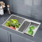 Stainless Steel Kitchen Sink Double Bowl Kitchen Sink with Drain Basket Description A sink is the heart of a kitchen, and a good sink can add vitality to your life. The combination of premium material and exquisite craftsmanship makes this stainless steel sink sturdy for long-term use. With its generous appearance, it can easily blend into your kitchen. The double bowl design provides ample space for cleaning utensils, vegetables, fruits, and more, bringing convenience to your life. Key Features Build to Last: Made of stainless steel with a wire drawing process, this product is wear-resistant, rust-resistant, and not easy to deform, ensuring your long-term use even in a wet kitchen. Large Capacity: The two bowls of 14.72*14.96 inches and 12.99*12.99 inches not only provide spacious operating space to accommodate most kitchen utensils but also allow you to wash utensils and ingredients (all not included) separately, significantly improving work efficiency. Thoughtful Design: The soundproof pad can alleviate the impact of flowing water on the sink and reduce noise. An extra anti-condensation coating is applied to the bottom of the sink to prevent moisture accumulation from damaging the cabinet. The two reserved holes can be used for installing faucets/soap dispensers(not included). Efficient Drainage: X-shaped guide lines and drainage filters can help quickly drain water, intercept food residues, prevent blockages, improve drainage efficiency of drainage pipes, and reduce maintenance costs. Generous Appearance: The silver color tone, rectangular shape, and smooth lines give this product a generous appearance, making it easy to integrate into your home kitchen. Assembly in a Breeze: The simple structure and complete accessories allow you to quickly install this product and enjoy the fun of installation. Easy to Clean: The simple structure and smooth surface allow you to easily remove residues inside and clean it with a soft cloth with neutral cleaner (not included), or running water. Ideal Gift: With a generous appearance and good performance, it would be a wonderful surprise for your family and friends at the housewarming and other festivals. Customer Service: We stand behind all our guests and look forward to assisting you with your purchase. It is our pleasure to answer your confusion and questions. The end of the story between us is definitely not "we sell and you buy". Details Overflow Outlets: The height-appropriate overflow outlets prevent water flow from leaking out due to high water levels, and timely discharge of excess water. V-shaped Drainer: It can help form a water seal layer, prevent odors, and keep the air clean and fresh. Drain Basket: It can help you dry dishes, fruits, vegetables(not included), etc. while keeping the countertop clean. Application It is an ideal choice for garages, laundry rooms, basements, bars, kitchens, backyards, commercial restaurants, etc. It is very suitable for cleaning food, fruits, vegetables, dishes, etc. Specifications Material: Stainless Steel Process: Wire Drawing Color: Silver Style: Modern Shape: Rectangle Number of Bowls: 2 Assembly Required: Yes Mounting Type: Countertop/Under/In-counter Installation Sink Size: 37.4*38cm/14.72*14.96in, 33*33cm/12.99*12.99in Drainage Pipe Size(D*L): 5*65cm/1.97*25.59in Total Product Size: 78*43*21cm/30.71*16.93*8.27in Packaging Size: 83*49*26cm/32.68*19.29*10.24in Gross Weight: 8.7kg/19.18lbs Net Weight: 8.27kg/18.23lbs Package Included 1* Stainless Steel Sink 1* Drain Basket 2* Drainage Filters 1* English Manual Other Accessories for Assembly Notes Please check the product size to make sure it fits your installation needs before ordering. Please read the English manual carefully before use. And pay particular attention to the safety instructions included. Please allow the slight color difference caused by the shooting light and 1-3cm error due to manual measurement, and make sure you do not mind before you order. This product does not include a faucet or telescopic basket, but rather a drainage basket. This product does not include a faucet or telescopic basket, but rather a drainage basket. Payment Delivery details Terms of sales About us Contact us Payment We accept ebay payment 。 Fees such as import duties, taxes are not included in the item price or shipping costs. These charges are the buyer's responsibility. Delivery details Shipping: 2-9 working days to: USA Terms of sales We maintain high standards of excellence and strive for hundred percent customer satisfaction. Feedback is very important to us. We hope that you contact us immediately before you give neutral or negative feedback, so that we can address your concerns. It is impossible to address issues if we do not know about them! About us Your satis faction is our ultimate goal. We work hard to earn your trust and future business. Our certified technicians have tested each item before shipping. The unit comes with 1 year limited warranty on all manufacturing defects. a) If you receive a defective item, you may return it or ask for a discount. Please contact us within 14 days after you receive the package. b) What you returned must be intact and in its original packaging as re? u. Customer is responsible for shipping costs of the returned item. c) We will cover the cost of shipping back t with the shipping rate indicated in the registration page. We will send you a new unit or refund the full payment you paid. Thank you. Contact us Business Hour Business Hour: Monday To Friday: 8:30 AM to 5:00 PM (Beijing China time) Due to time zones, our reply to your questions may not be immediately. But within above working time, we will reply your email within 24 hours. If it's non-workdays, please kindly be patient and wait till Monday. Please contact us with ebay message. Please feel free to contact us if you have any questions. Monday To Friday: 8:30 AM to 5:00 PM (Beijing China time) Due to time zones, our reply to your questions may not be immediate