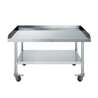 Stainless Steel Equipment Grill Stand with Adjustable Undershelf 24"x36" Heavy Duty NSF certified 18 Gauge Stainless Steel Table top Undershelf galvanized steel is fully adjustable Surface Height with casters is 29" Includes 4 Casters - 2 wheels with locking brakes One Inch is wrapped around 3 sides of the equipment stand. We can’t ship this outside the continental US item is too big