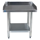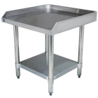 The Stainless Steel Equipment Grill Stand Table is a versatile and robust piece of kitchen furniture designed to provide a sturdy and reliable surface for various cooking and preparation tasks. Constructed from high-quality stainless steel, this table is perfect for both home and commercial kitchens, offering exceptional durability and resistance to corrosion, rust, and wear. This Heavy Duty 18 Gauge Stainless Steel Table is designed to provide a durable and reliable work surface for a variety of kitchen and industrial tasks. Constructed from high-quality 18 gauge stainless steel, the table top is both sturdy and resistant to dents, scratches, and corrosion, making it ideal for heavy-duty use in demanding environments. The sleek stainless steel surface offers a professional and modern look, complementing any kitchen, workshop, or commercial space. Surface Height is 24" NSF certified One Inch is wrapped around 3 sides of the equipment stand. Feet have adjustments to handle uneven floors Uses of the Heavy Duty 18 Gauge Stainless Steel Table in Various Settings: Kitchen Use: Food Preparation: Provides a sturdy and hygienic surface for chopping, slicing, and other prep work. Equipment Stand: Ideal for holding heavy kitchen appliances like mixers, blenders, and food processors, ensuring stability during use. Storage Solution: The adjustable undershelf offers additional storage space for utensils, pots, pans, and ingredients, keeping the kitchen organized and clutter-free. Home Use: Crafting Station: Offers a spacious, easy-to-clean surface for arts and crafts, DIY projects, and other creative activities. Laundry Room: Provides a durable surface for folding clothes or organizing laundry supplies. Garage or Workshop: Serves as a reliable workbench for handling tools and materials, supporting a variety of household repair and maintenance tasks. Canteen or Cafeteria Use: Serving Station: Acts as a robust station for serving food, drinks, or condiments in canteens and cafeterias. Preparation Area: Offers a clean and spacious area for assembling meals or packaging food for service. Cleaning Station: Can be used as a dedicated area for washing utensils and dishes, thanks to its water-resistant stainless steel surface. Commercial Kitchen Use: Versatile Workspace: Provides a multifunctional area for various kitchen tasks, from food prep to plating and finishing. Heavy Equipment Support: Strong enough to support commercial-grade kitchen equipment such as griddles, fryers, and grills. Sanitation Compliance: Stainless steel surfaces are easy to sanitize, meeting health and safety standards for food service environments. Outdoor Use: BBQ and Grilling Station: Acts as a reliable prep and serving station next to an outdoor grill, providing space for utensils, sauces, and prep work. Gardening Table: Useful for potting plants, organizing garden tools, and handling other outdoor tasks requiring a sturdy work surface. We can’t ship this outside the continental US item is too big