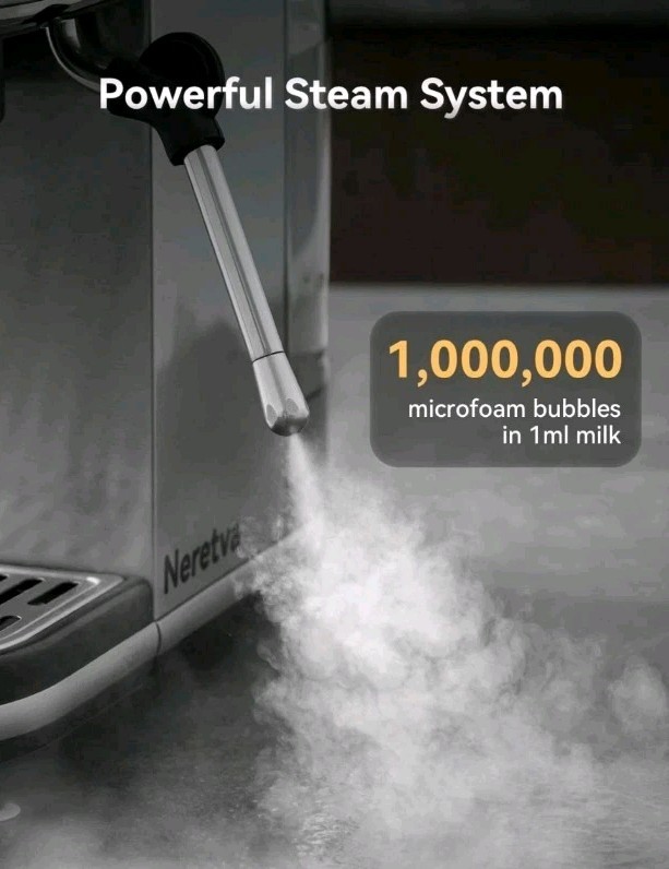The Stainless Steel Espresso Machine by Neretva is a modern and sleek coffee maker designed for creating espresso and various coffee beverages. With a high pressure of 20 bar, it can produce rich and flavorful drinks like latte, mocha, cappuccino, and iced coffee. The machine features a steam wand, frother, and adjustable settings for single or double shots. It also includes an automatic shutoff, metallic exterior finish, and operates on a semi-automatic mode with touch control buttons. With a capacity of 1.305 liters and a wattage of 1350W, this espresso machine is a stylish and functional addition to any kitchen for coffee enthusiasts. *** Box May Show Signs Of Damage But Item Is In Perfect Condition (see pictures) ***