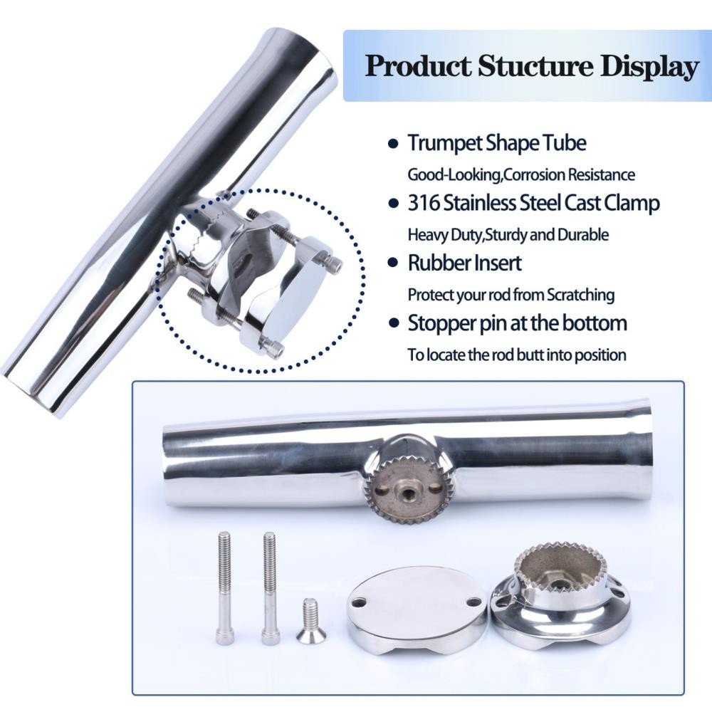 $ 23.714X 316 Stainless Steel Boat Fishing Rod Holder Clamp Fits 1-1/4 to 2 Inch Rails