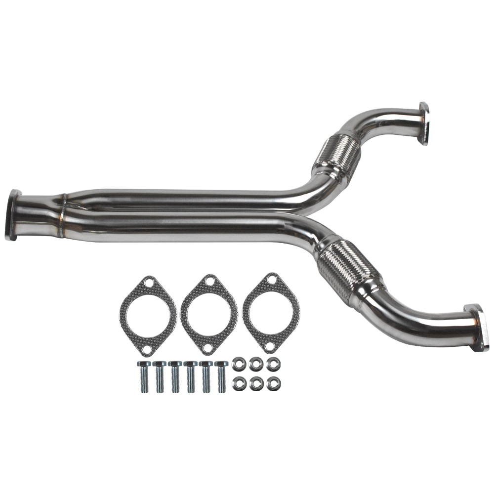 Stainless Steel Flex Y-Pipe For 2003-2008 350Z Z33 G35 V35 350GT VQ35DE Purchase instructions Professional installation is highly recommended, exhaust systems are not always perfect, and while most of the time these exhaust systems work perfectly together, occasionally a slight modification to the exhaust system is required to achieve a perfect fit. Specification: Specification: Inlet: 2.5" Outlet: 3.0" Feature: 100% Brand New Items, Never Used Or Installed CNC Machined Flanges Made with T-304 Stainless Steel The Y-Pipe is Installed Between the Catalytic Converter and Mid-Pipe Of Your Vehicle Exhaust System Made By OEM Approved and ISO Certified Manufacturers With Materials That Meets Or Exceeds Strict OEM Requirements Gaskets, Bolts, & Nuts Included No Installation Guides Are Included, We Highly Recommend To Seek Professional Installation Fitment: 2003-2008 Nissan 350Z VQ35DE 2003-2008 Infiniti G35 VQ35DE(Requires Extension Pipe and Does Not Fit AWD Models) This is Not a Full Exhaust System Compatible With Stock/OEM Exhaust System