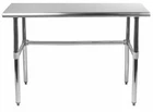 The Stainless Steel Food Prep Appliance Storage DIY Work Table with Open Base is a versatile and practical solution for kitchens, workshops, and DIY projects. Designed for durability and functionality, this work table offers ample space for food preparation while providing an open base for easy access to larger items or appliances. Heavy Duty 18 Gauge Stainless Steel Table Top NSF certified Legs and Crossbrace are Galvanized Steel Table height is 35” Feet have adjustments to handle uneven floors Easy to Assemble High-Quality Stainless Steel Construction : Made from premium stainless steel, this table is resistant to rust, corrosion, and stains, ensuring long-lasting performance in any environment. Open Base Design : The open base allows for easy storage of larger appliances or tools, making it ideal for both food prep and DIY tasks. This design enhances accessibility and organization. Spacious Work Surface : The large stainless steel tabletop provides plenty of room for food preparation, assembly, or working on various projects. Easy to Clean : The smooth surface is easy to wipe down and sanitize, making it perfect for maintaining a hygienic workspace. Food Preparation : Perfect for chopping, mixing, and assembling meals, offering a reliable surface for daily cooking tasks. Appliance Storage : The open base is ideal for storing larger kitchen appliances, DIY tools, or equipment, keeping them accessible and organized. Versatile Workstation : Suitable for various applications, this table can be used in commercial kitchens, catering setups, or even in workshops for crafting and repairs. Corrosion-Resistant : The stainless steel material prevents rust and corrosion, making it suitable for high-moisture environments like kitchens. Heat and Impact Resistant : Designed to withstand high temperatures and minor impacts, this table is durable enough for regular use in busy kitchens or workshops. Non-Porous Surface : The smooth, non-reactive surface ensures food safety, as it won’t absorb moisture or odors. Hygienic : The easy-to-clean surface helps prevent bacteria buildup, ensuring a safe and sanitary work environment. The Stainless Steel Food Prep Appliance Storage DIY Work Table with Open Base is an essential addition to any kitchen or workshop, providing a sturdy and flexible workspace for food preparation, storage, and a variety of DIY tasks.