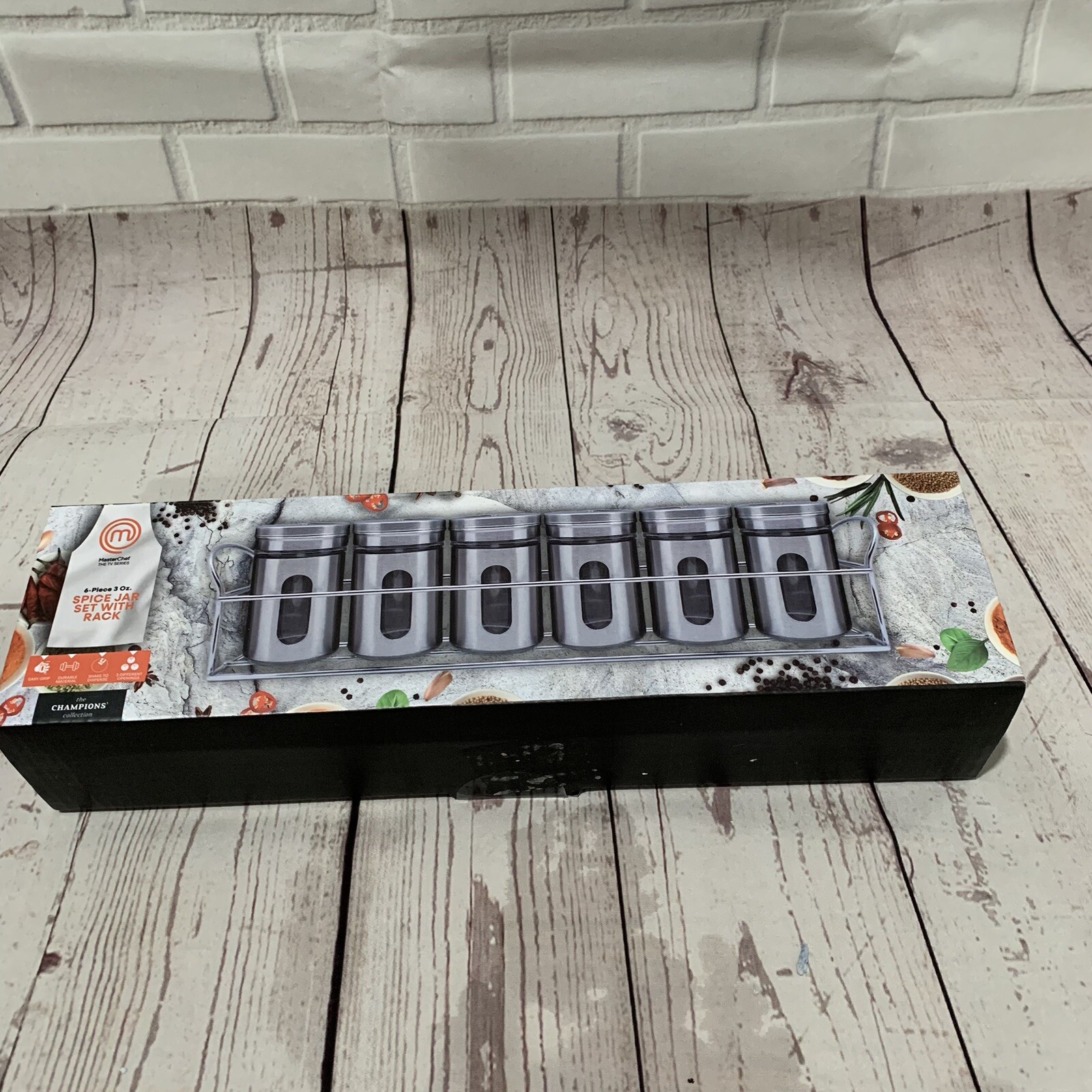 Master Chef Stainless Steel & Glass Spice Jar Set with Rack New Set Of 6