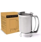 Features: ---1.Stainless steel, stable and durable. Safe cleaning in the dishwasher. ---2.Accurately dispense batter while effectively saving material and strength. ---3.The scientific wide base design can better increase the balance of the shelf and make it not easy to fall when the dispenser is placed in it. ---4.Perfect for use with pancakes, crepes, waffles, biscuits etc. ---5.List:batter dispenser *1 Steps for usage: ---1.Put the prepared batter into the container. ---2.Inject a batter of the same capacity into each cake mold. ---3.Put the cake mold into the baking oven or the microwave oven, which is easy to operate. 1.Made of high quality grade stainless steel, corrosion resistant, high temperature resistant, good strength, not easy to rust, safe to use. 2.Equipped with an easy to control spring-loaded handle that opens and closes the dispenser nozzle,just gently grip the handle to distribute the batter smoothly; durable and easy to clean. 3.The wide mouth opening makes the batter dispenser easy to fill. Now pouring in your cake, brownie, and waffle batter will be a breeze. 4.Batter dispenser can be directly in contact with food safety, capacity of about 800ML. 5.Easily and accurately dispenses most batters, sauces, and frosting, even pizza sauce.The batter outlet is made of food grade silicone, which has a high degree of sealing. When the outlet is closed, it will not flow out of the batter.