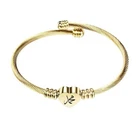 Stainless Steel Heart Bracelet Engraved Charm Bracelet for Women Golden