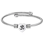 Stainless Steel Heart Om Bracelet Engraved Charm Bracelet for Women Silver