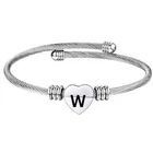 Stainless Steel Heart Word-W Bracelet Engraved Charm Bracelet for Women Silver