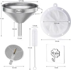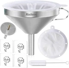 About this item Food-Grade Funnel Set: Kalave metal funnel crafted from 100% food grade high-quality stainless steel, The detachable 200 mesh funnel strainer made of PP frame and 200 fine mesh nylon filters. Funnel set is safe, non-toxic, sturdy and durable. compatible for most bottles, jars and other containers. The premium food-grade stainless steel funnel set resist bending, breaking, corrosion and rusting, and stay safe and beautifully with you for life. A funnel with two removable strainers: The 200 mesh funnel strainer helps you to filter the fine grains. It is perfect for filling bottles or transferring liquid ingredients such as oils, fry oil, sloe gin, wine, juice, milk, goat milk, soy milk, beer. The stainless steel strainer helps you filter hot cooking oil, grease, soup or seeds from homemade juice. You can also separate the strainer and use it as a standard funnel to fill a pepper、spice、salt, jam, particulates, powder. Protecting hands: The kitchen funnel handle is designed for protecting hands while transferring hot things, and it can be used to hang the Food funnel on a hook when not in use, saving storage space and maintaining hygiene. Super Easy to Clean: The funnel and the stainless steel strainer and 200 mesh food filter strainer is completely dishwasher safe.