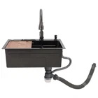 Multifunctional Stainless Steel Kitchen Sink with Pull-out Faucet & Knife Holder Welcome to our store~ Description This multifunctional kitchen sink set is made of high-class materials and adopts excellent workmanship, making it sturdy and corrosion-resistant. Its enlarged and deepened sink and a small basin that can be moved from left to right not only reduce water splashing but also increase the space for cleaning a lot of cookware. With it, you can enjoy a more convenient life. Don't hesitate, upgrade your kitchen and embrace future life! Key Features Build to Last: It is made of high-class 304 stainless steel with a nano-coating process, so it has good corrosion resistance, oxidation resistance, rustproof, and strength. It can be used in wet environments such as the kitchen and laundry room. Large Capacity: The 23.62*17.72*8.66in product can hold a large amount of dishes, making you more comfortable and efficient when washing. It is a great helper for you to clean dishes or prepare food. Enhanced Load-bearing Capacity: The sink is made of thickened (panel thickness: 3mm, inner wall thickness: 0.8mm) and reinforced 304 stainless steel, which can withstand greater weight so you can use it with confidence. Carefully Designed: The slope and U-shaped groove at the bottom of the sink can speed up the drainage of the sink and avoid water accumulation. The drain hole is cleverly designed on the right side, which can reduce the problem of clogging the drain when washing dishes. Moreover, the right drain design takes full advantage of the space under the sink. You can place an under-sink organizer, water filter, or anything you want under the sink. Good Sealing Performance: These sealing rings can make the connection tighter, effectively reducing water leakage and saving you costs. Excellent Odor-resistance Performance: The drainage strainer intercepts food and debris for easy disposal and prevents clogging. The specially designed drain pipe drains faster, so you don't have to worry about being troubled by the unpleasant smell. Thoughtful Design: The anti-condensation coating effectively prevents excessive temperature differences and protects the cabinet from moisture. Its is equipped with sound insulating pads, which can effectively reduce the noise generated by the faucet water release and the collision of dishes, creating a quiet kitchen environment. The drainpipe can be freely bent, depending on the installation position, reducing use restrictions. User-friendly Design: The product comes with a separate small basin, and with a rail, you can freely place it on the left or right side of the sink for easy cleaning of fruits and vegetables. In addition, the 360° rotatable pull-down faucet with various water outlet methods (stream mode, spray mode, sweep mode) allows you to clean every corner of the sink. Modern and Simple: The low-key black color and smooth lines give this sink set a modern and simple appearance, which fits most household styles. Easy to Install: Its simple structure and complete installation accessories allow you to easily complete the installation in a short time. In addition, 3 different mounting ways (topmount, undermount, flushmount) can meet your different needs. Easy to Clean : The smooth surface, simple construction, and rounded corner design that does not easily harbor dirt make the sink easy to rinse with clean water. Buy with Confidence: We stand behind all our guests and look forward to assisting you with your purchase. It is our pleasure to answer your confusion and questions. The end of the story between us is not "we sell and you buy". Details Anti-overflow Holes: They can reduce the risk of overflowing water. Even if you forget to turn off the water, you don't have to worry. Practical Soap Dispenser: It can hold detergent or hand sanitizer (not included) to make your cleaning work more convenient. Chopping Board: You can chop and slice directly on the sink, which is very convenient when cooking. Knife Holder: The sink countertop is designed with multiple slots for organizing and storing knives or scissors. Application This product can be widely used at homes, restaurants, bars, hotels, cafes, milk tea shops, school canteens, dessert shops, cafeterias, garages, clean rooms, and any other commercial places for manual cleaning of food, fruits, vegetables, dishes, etc. Specifications Material: 304 Stainless Steel, Solid Wood, ABS Process: Nano Coating Color: Black Assembly Required: Yes Faucet 360° Rotatable: Yes Shape: Rectangular Faucet Spraying Modes: Stream Mode, Spray Mode, Sweep Mode Mounting Type: Topmount, Undermount, Flushmount Style: Modern Inner Wall Thickness: 0.8mm/0.03in Panel Thickness: 3mm/0.12in Gross Weight: 8kg/17.64lbs Net Weight: 7.6kg/16.76lbs Product Size: 60*45*22cm/23.62*17.72*8.66in Package Size: 64*49*24cm/25.2*19.29*9.45in Items included 1* Multifunctional Kitchen Sink 1* Knife Holder 1* Pull-out Faucet 1* Basin 1* Chopping Board 1* Soap Dispenser All Accessories for Assembly Notes Please check the size carefully before ordering. Please do not scratch its surface with sharp objects to obtain a longer service life. If you want to get a better installation effect, we suggest you ask professional workers to install it. Please allow the slight color difference caused by the shooting light and 1-3cm error due to manual measurement, and make sure you do not mind before you order. Payment Delivery details Terms of sales About us Contact us Payment We accept ebay payment 。 Fees such as import duties, taxes are not included in the item price or shipping costs. These charges are the buyer's responsibility. Delivery details Shipping: 2-9 working days to: USA Terms of sales We maintain high standards of excellence and strive for hundred percent customer satisfaction. Feedback is very important to us. We hope that you contact us immediately before you give neutral or negative feedback, so that we can address your concerns. It is impossible to add