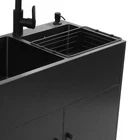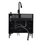Specification Material: 201 Stainless Steel, Solid Wood, Cold Rolled Steel Process: Nano-Coating, Manual Welding and Grinding Color: Black Shape: Rectangular Assembly Required: Yes Mounting Type: Freestanding Water Outlet Modes: Water Column, Shower Spray Faucet Pull-out Length: About 30cm/11.81in Each Drain Opening Diameter: 11cm/4.33 in Door Gap Spacing: <5mm/0.2in Large Sink Inner Size: 36*36*20cm/ 14.17*14.17*7.87 in Small Sink Inner Size: 31*31*20cm/ 12.2*12.2*7.87 in Overall Sink Outer Size(L*W): 75*41cm/ 29.53*16.14 in Product Size: 75*41*78cm/29.53*16.14*30.71in WELCOEM Description Are you looking for a kitchen sink solution that combines practicality and beauty? Then look at our product! The pulled-out faucet makes cleaning the sink a breeze, bringing you a convenient experience. It creates an efficient and clean kitchen environment for you. Choosing it is to choose quality and convenience, making your kitchen life more relaxed and enjoyable! Key Features Build to Last : The product is mainly made of high-class 201 stainless steel, solid wood, and cold rolled steel, with manual welding and grinding, and nano-coating processes, which is impact-resistant, and scratch-resistant, with high durability and reliability, ensuring long-term use. Convenient and Flexible: The faucet's spray head can be pulled out within 11.81 inches for flexible use. It also has 2 water outlet modes: water column and shower spray water outlet, to meet your daily different washing needs. Storage Assistant: The large and deep double sinks (7.87 in) allow you to multitask and clean vegetables, fruits, plates, and cookware with ease, improving cleaning efficiency and avoiding splashing. The spacious cabinet under the sinks allows you to store enough cleaning supplies. Good Drainage: It adopts an X-shaped diversion design and large diameter outlets (each: 4.33 in) for fast drainage. The dual filter design (coarse filter, fine filter) can effectively filter impurities, preventing food or other waste into the drain. The V-shaped drain pipe is equipped with an anti-odor water design, which can effectively prevent the drain odor from returning and keep the kitchen air fresh. Thoughtful Design: The silent pads can reduce the noise caused by water flow impact and create a quieter environment. The anti-condensation coating reduces the generation of condensation water outside the sink, keeps the cabinet dry and hygienic, and extends the service life of the product. The drainage basket allows you to safely put washed utensils or fruits and vegetables (all not included) into it to drain water and keep the countertop clean. Good Sealing Effect : The good connection adds to its good sealing to avoid leaks. In addition, the door gap of the cabinet is less than 0.2 in, which has a good sealing effect and effectively reduces the accumulation of dust and dirt, keeping the cabinet clean and hygienic. User-friendly: It has a freestanding design and can be adapted to various kitchen layouts. It not only saves cabinet space but also gives a concise, modern feel visually. Moreover, the moderate height (30.71 in) reduces the burden of working in the kitchen and brings you a more comfortable user experience. In addition, we have designed two installation holes for the kitchen sink. Therefore, you can directly install a pull-out faucet and a soap dispenser without drilling any more holes. Complete Set: The product package includes two sinks, a soap dispenser, a faucet, V-shaped drainage pipes, a draining basket, etc, so you don't have to buy additional items, which greatly saves you time and money. Easy to Clean : The elevated base design and a pull-out faucet not only enhance cleanliness but also ensure quick and easy cleaning, making daily maintenance a breeze. Good Customer Service: We stand behind all our guests and look forward to assisting you with your purchase. It is our pleasure to answer your confusion and questions. The end of the story between us is not "we sell and you buy". Details R -corners: They not only increase the beauty of the product but also facilitate cleaning. Soap Dispenser: The included soap dispenser gives you easy access to hand sanitizer, dish soap, and other cleaning supplies, making kitchen cleaning even easier and more efficient. Practical Handles : The two cabinet door handles provide easy and secure opening and closing, ensuring convenience and safety during use. Anti-overflow Holes : They can help drain water and prevent the ground from getting wet when you forget to turn off the water. Cold Rolled Steel Cabinet Feet: They are not only durable but also can effectively prevent the cabinet feet from moisture deformation and extend the service life. Application It is suitable for kitchens, restaurants, dessert shops, coffee shops, garages, hotels, laundry rooms, bathrooms, pet shops, and other places. Specification Material: 201 Stainless Steel, Solid Wood, Cold Rolled Steel Process: Nano-Coating, Manual Welding and Grinding Color: Black Shape: Rectangular Assembly Required: Yes Mounting Type: Freestanding Water Outlet Modes: Water Column, Shower Spray Faucet Pull-out Length: About 30cm/11.81in Each Drain Opening Diameter: 11cm/4.33 in Door Gap Spacing: <5mm/0.2in Large Sink Inner Size: 36*36*20cm/ 14.17*14.17*7.87 in Small Sink Inner Size: 31*31*20cm/ 12.2*12.2*7.87 in Overall Sink Outer Size(L*W): 75*41cm/ 29.53*16.14 in Product Size: 75*41*78cm/29.53*16.14*30.71in Cabinet: Package Size: 77*47*13cm/30.31*18.5*5.12in Gross Weight: 13kg/28.66 lbs Net Weight: 12.35kg/27.23 lbs Drainage Basket + Drainage Kit: Package Size: 78*45*25cm/30.71*17.72*9.84in Gross Weight: 9kg/19.84 lbs Net Weight: 8.55kg/18.85 lbs Package Included 1* Sink 1* Faucet 1* Cabinet 1* Drainage Basket 2* Drainers 1* Soap Dispenser All Accessories for Assembly Notes Please check the product size carefully before purchasing. We send the cabinet and drainage basket & drainage kit separately to protect the product from damage during tran