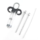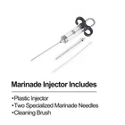 You may also like 54 Pcs Stainless Steel Kitchen Utensils Nonstick Cooking Tools Heat Resistant US 116.44 USD 123.87 USD Free shipping 6% off 8-Piece Nylon Kitchen Utensil Set Heat Resistant Dishwasher Safe W/ Ring New 10.06 USD 10.7 USD Free shipping 6% off 34PCS Silicone Kitchen Utensil Set Heat Resistant Nonstick Kitchen Cooking Tools 58.17 USD 61.88 USD Free shipping 6% off 23pc Professional Baking Set Mixing Measuring Cups Bowls Prep Spoons Non-Slip US 29.57 USD 31.46 USD Free shipping 6% off 9 Piece Teak Wooden Cooking Utensils Set W/ Holder Spoon Rest & Nonstick Spatula 42.13 USD 44.82 USD Free shipping 6% off Give your food a blast of extra flavor with the Stainless Steel Silver Marinade Injector Kit. Because most marinades can't penetrate more than an eighth of an inch, this injector takes your grilling to the next level by directly injecting the flavor into the meat itself. Crafted of stainless steel, this marinade injector kit has a three-ring handle and a comfort grip and comes with two specialized marinade needles and a cleaning brush. The Stainless Steel Marinade Injector Kit will take your grilling up a notch and makes a great gift for cooks of all skill levels for birthdays, Christmas, Hanukah, and other occasions, too! WARNING: Never allow childern to use this tool. This injector is for marinade only. Needles are sharp. Use caution when handling. Keep tips pointed away from you and others. Weight:0. 52lbs Stainless Steel Red Marinade Injector Set, 2OZ Capacity, 3 Pieces Long stainless steel needle puts flavor in your meat A 3-ring handle and a comfort grip Hand wash only Needle included: Yes Great addition to your cooking collection Product weight: 0. 52 lbs. Comes with the stainless steel injector, 2 specialized marinade needles and a cleaning brush Use with your favor marinade or brine Product dimensions: 12" x 5. 12" x 1. 5" You may also like 23pc Professional Baking Set Mixing Measuring Cups Bowls Prep Spoons Non-Slip US 29.57 USD 31.46 USD Free shipping 6% off 54 Pcs Stainless Steel Kitchen Utensils Nonstick Cooking Tools Heat Resistant US 116.44 USD 123.87 USD Free shipping 6% off 9 Piece Teak Wooden Cooking Utensils Set W/ Holder Spoon Rest & Nonstick Spatula 42.13 USD 44.82 USD Free shipping 6% off 34PCS Silicone Kitchen Utensil Set Heat Resistant Nonstick Kitchen Cooking Tools 58.17 USD 61.88 USD Free shipping 6% off 8-Piece Nylon Kitchen Utensil Set Heat Resistant Dishwasher Safe W/ Ring New 10.06 USD 10.7 USD Free shipping 6% off