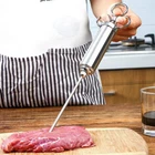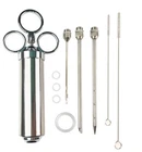 Metal Marinade Needles For All Needs: BBQ injector set includes four needles to cover all of your marinade meat injector needs, two designed for turkey, steaks and chicken fillets - for flavor injection into big pieces and two of influsing garlic and herbs - for injection into small pieces. Juicy & Yummy for every bite: This seasoning meat syringe make every bite of the meat is flavorful and juicy. Now perfect high quality meat injector syringe flavor up your Thanksgiving /Christmas turkey, beef, pork and BBQ roaster. Lifetime Guarantee & ECO Friendly : 100% safe & healthy kitchen food injector syringe. Bpa-free turkey injector and FDA Silicone O-rings for spare replacement. Keep your family healthy with meat marinade injector. Easy to use & dishwasher safe: Our meat kit is designed for quick and easy disassemble. All the parts of our meat injectors professional are detachable for easy cleaning. With 2 cleaning brushes makes clean up Super easy. Our perfect marinade injector kit keeping the stainless steel shiny and your turkey baster syringe super tasty. Safe & Durable Injectors: The 304 High food-grade heavy duty stainless steel is the grade we could possibly find for a very well made, durable and lifelong basters for cooking food syringe injector will deliver an explosion of flavor into your meat every single time. **************************************************************************** Package Includes: Each pack Contains 1 Item based on your check out count of selection ******************************************************************************