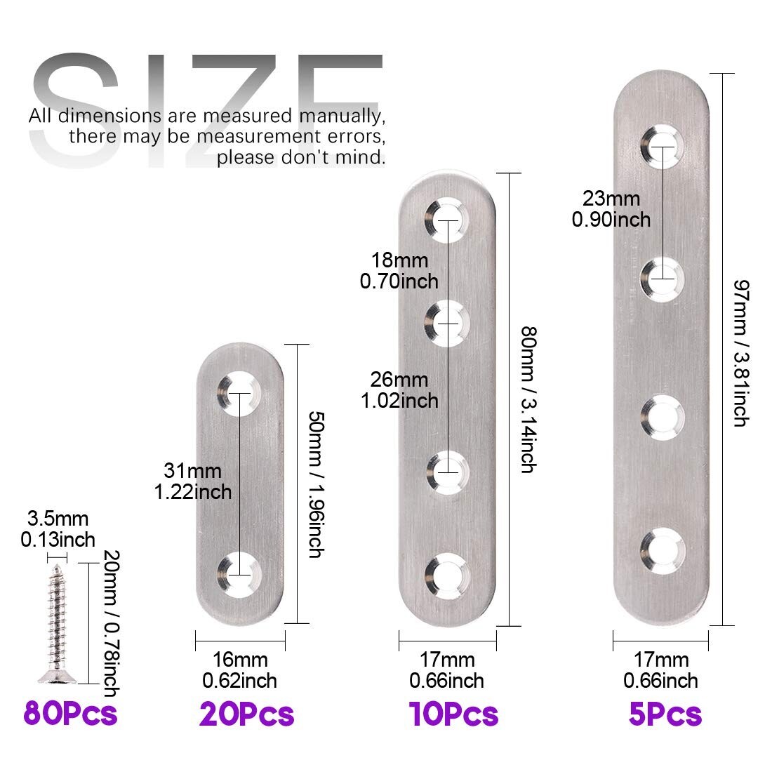 Metal Shelf Support Brackets - 115Pcs - 3 Sizes - Stainless Steel - with Screws ‹ › ‹ › ‹ › ‹ › ‹ › ‹ › ‹ › ‹ › ‹ › Metal Shelf Support Brackets -115Pcs - 3 Sizes - Stainless Steel - with Screws Features: Includes screws that match perfectly with the corner brackets Easy installation with a screwdriver Can be used for strengthening right-angle joints Durable, corrosion-resistant, and rust-proof Protective film on the surface to prevent scratches Comes in 3 sizes to meet all your needs Benefits: High-quality metal construction for long-lasting use Widely applicable in home and factory areas Includes a large quantity of brackets and screws Provides reliable support for shelves and furniture 12-hour customer service for a satisfactory shopping experience Why choose our Metal Shelf Support Brackets? Don't settle for flimsy and unreliable shelf support brackets. Our Metal Shelf Support Brackets are made of high-quality stainless steel, ensuring durability, corrosion resistance, and rust-proof performance. With the included screws, installation is quick and easy, allowing you to strengthen right-angle joints effortlessly. Whether you need support for shelves, furniture, or other applications, our brackets are the perfect choice. Plus, with a large quantity of brackets and screws, you'll have everything you need for your projects. Trust in our product and enjoy the peace of mind that comes with reliable support. Upgrade your shelving and furniture with our Metal Shelf Support Brackets - order now! Shipping Free & Fast Shipping - We offer free shipping to most of the USA with a normal delivery time of 3-7 days. However, due to the current situation, additional delivery time (up to 3 weeks) may be required for some items. Alternative Carriers - We may use alternative carriers (e.g. USPS, FedEx, UPS, etc.) to ensure your package arrives safely and on time. Due to the use of multiple carriers, we are unable to provide a tracking number automatically. Handling Time - Orders are processed and shipped within 1-2 business days of receiving cleared payment. Shipping Restrictions - Shipping to Alaska, Hawaii, Puerto Rico, Guam, and other US territories may incur shipping charges or delivery restrictions. Please contact us before ordering, or your order can be refunded/cancelled. State Restrictions - There may be restrictions based on your state of purchase. For example, certain items may not be shipped to California due to state regulations. Contact for Tracking Updates - If you require tracking updates or have any concerns about the delivery of your order, please feel free to contact us, and we will be happy to assist you. Return 30-Day Hassle-Free Returns - We want you to be completely satisfied with your purchase. If you are not, you can return the item within 30 days of receiving it for a full refund or exchange. Easy Return Process - To start a return, simply contact us and we will provide you with a prepaid return shipping label and detailed instructions. Restocking Fee - There are no restocking fees for returns. However, the buyer is responsible for return shipping costs if the return is not due to a seller's error. Refund Processing Time - Refunds will be processed within 5 business days of receiving the returned item in its original condition. Payment We accept all major credit cards, PayPal, and Apple Pay for your convenience. Your payment information is secure and encrypted to ensure a safe and seamless transaction. Please complete your payment within 3 days of purchase to avoid any delays in shipping. Feedback Your feedback is extremely important to us. We strive to provide the best products and customer service possible. If you are satisfied with your purchase, please take a moment to leave us a positive review. If you have any concerns or issues with your order, please contact us before leaving negative feedback. We are committed to resolving any problems and ensuring your satisfaction. Contact Us If you have any questions or concerns, please feel free to reach out to our customer support team. You can contact us through the eBay messaging system. We are available Monday to Friday, 9:00 am to 5:00 pm EST, and we will do our best to respond to your inquiry within 24 hours. Thank you for supporting our small family business!