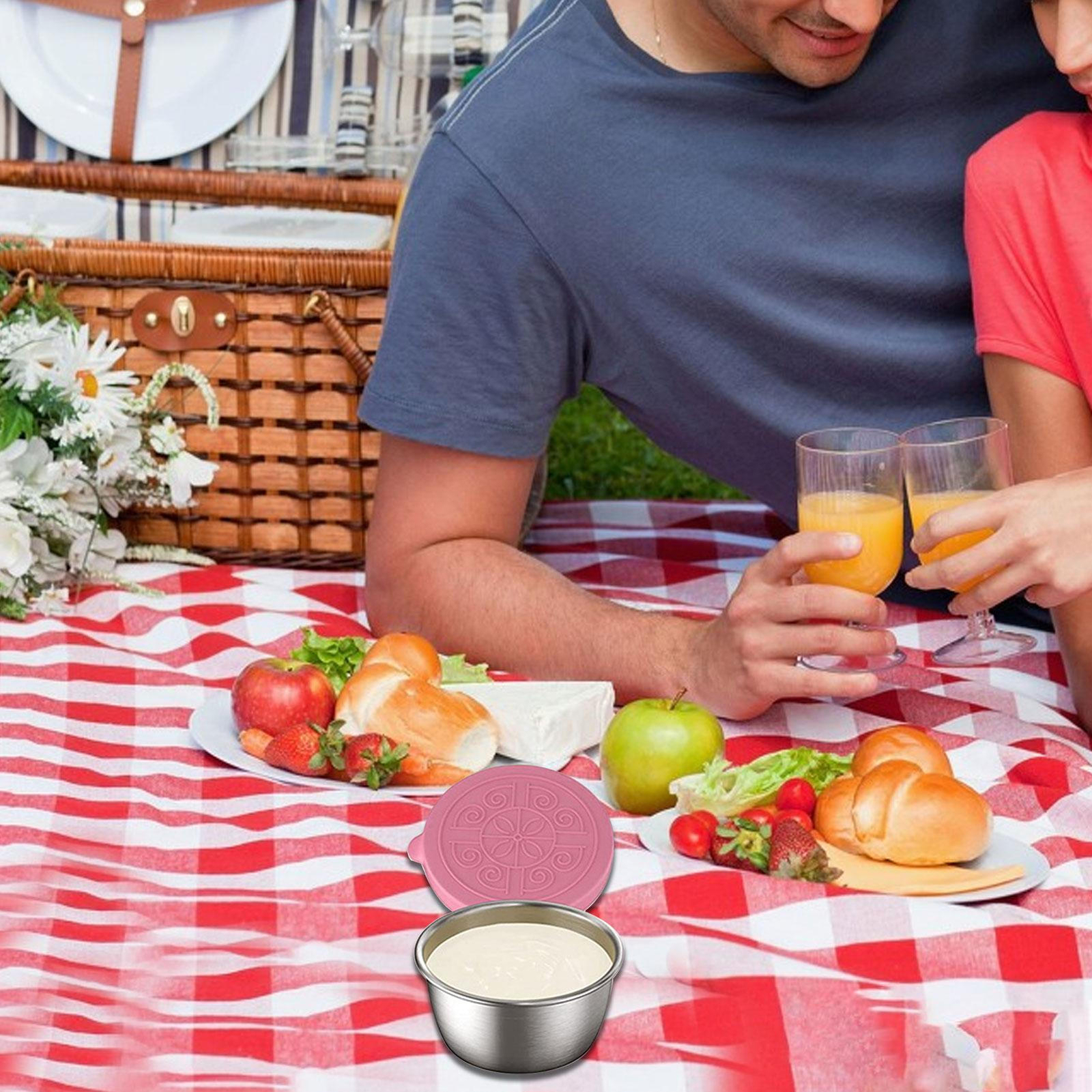 Description: 1. Small Condiment Containers with Lids are made of high-quality stainless steel, which is not easy to break; its silicone cover can cover and seal the original flavor of food and beverages, bringing you a pleasant experience of use. 2. Small Condiment Containers with Lids feature round curled edges and a leak-proof silicone cover, so there is no need to worry about food or liquid leakage; it also locks in the freshness of the food and will not affect the original taste of the food when put in the refrigerator. Specifications: Product Name: Small Condiment Containers with Lids Material: Stainless Steel Size: 5.4*4.2*2.8CM|2.12*1.65*1.1IN Product List: 1*Small Condiment Container with Lid Notes: Please allow 0.5cm/0.20in error due to manual measurement. Due to the difference between different monitors, the picture may not reflect the actual color of the item,hope you can understand.