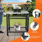 The grill table provides a rich variety of storage accessories that offer additional storage for utensils such as tongs, spatulas, brushes, and pizza paddles. The grill cart can be used indoors and outdoors [Universal Outdoor Grill Cart]: The grill table measures 32"L x 24"W x 35"H, which is widely applicable to popular pizza ovens. The perfect companion for your grill, griddle, stove, or smoker—good for organizing pizza oven accessories and making outdoor cooking more convenient [Ample Storage Accessories, Well Organized]: The outdoor prep table provides a rich variety of storage accessories, including paper towel holders, cart handles, bottle openers, racks, 10 S-hooks, cookware placement area, garbage bag rack, providing ample storage space for your cooking tools and kitchen items [Strong Material, Stable Structure]: The brackets around the BBQ cart are made of alloy steel with a thickness of up to 1MM, using the principle of triangular mechanics to enhance stability, with a load-bearing capacity of up to 650 pounds. The 304 stainless steel tabletop is designed with double-row screws to prevent wobbling during use [Three-layer Grill, Spacious Storage]: The three-layer grill table structure layout provides ample storage space for food and tools. The pizza oven cart is equipped with an adjustable middle partition, which is convenient for you to customize the storage space on each shelf according to your personal needs. The mesh partition is not easy to accumulate dust and water and is easy to clean [Mobility and Stability]: This pizza oven stand is equipped with side handles, two 360° universal wheels and two 360° directional wheels. It is convenient for you to move the grill cart to different locations. Two of the directional wheels are equipped with locking brakes, which can easily move the food cart into place and lock it firmly whether you are hosting a backyard barbecue or an indoor dinner party