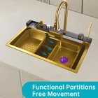 Store category Sign Up Now ! You may also like Product Description Bullet Points: Easy Integration: Recessed design of our top mount sink makes it simple to insert directly into the pre-cut hole on the countertop, delivering a mid-counter basin installation design that blends seamlessly with the surroundings for a polished look Versatile Cleaning Solution: Experience easy and efficient dishwashing and vegetable preparation with this top-mount kitchen sink featuring a multi-function faucet. With a 360 pull-out faucet, three water spray modes, and an innovative waterfall design, this kitchen sink simplifies all cleaning tasks Long-Lasting Brilliance: Made from excellent 304 stainless steel, this top mount kitchen sink provides wonderful rust-proof performance and unparalleled hardness. The nano-coating surfaces add to its durability, ensuring that it keeps its bright appearance for years Maintenance Made Easy: Enjoy effortless cleaning with our top mount kitchen sink. With a high-pressure waterflow, efficient cup washer, and one-touch control drain button, you can easily keep your sink and cups spotless and hygienic Multi-Purpose Sink: This top-mount kitchen sink is ideal for a variety of settings, from bar counters and kitchens to laundry rooms, outdoors, and public areas. With basic accessories included, installation is easy for all users Transform your kitchen to a functional workstation with our rust-proof kitchen sink. The sink can be easily installed directly into your countertop offering easy maintenance and effortless washing of dishes and vegetables. Its versatile design makes it ideal for use in a variety of settings. Specifications: Product name: kitchen sink top mount Product color: Gold Product size: Sink size: 750x450x220mm/29.5x17.7x8.66in Inner diameter: 700x350x220mm/27.5x13.7x8.66in Outer diameter of drain hole: 110mm/4.33in Inner diameter of drain: 90mm/3.54in Drain pipe diameter: 45mm/1.77in Sink material: 304 SUS stainless steel Sink thickness: panel 3mm/0.11in Pipe: 0.8mm/0.03in Packing list: Basin x1 Drainer x1 Drain pipe x1 Bin in basin x1 Chopping board x1 Stainless steel whale faucet x1 Angle valve x2 Hot and cold hose x2 Table control drain x1 Triangular drain basket x1 Notes: 1. Due to different lighting and screen settings, the item color may be slightly different from the picture. 2. Due to different manual measurements, please allow a 1-2cm difference in size. Payment Delivery details Terms of sales About us Feedback & DSRs Payment Before you palce an order, please kindly make sure that you have a paypal account. We accept PAYPAL payment only. Payment should be completed within 2 days after auction closed, or unpaid dispute will be filed for an closing auction. An unpaid case will be filled after 4 days. Delivery details We ship to your eBay address. Each package will be shipped to US by UPS Regular Parcel with tracking number. Please check your shipping address carefully before checkout, it can't be changed if order completed. All items will be shipped within 1-2 business day upon receipt of payment.Orders placed on weekend will be shipped within 3 days. If you do not receive your item in 7-10 business days.please contact us immediately for further assistance. We will be responsible for any damages or losses incurred in the shipping process. About us We maintain high standards of excellence FIVE STAR and strive for 100% customer satisfaction! Positive Feedback is very important to us. We hope that you contact us immediately Before you give us neutral or negative feedback, so that we can satisfactorily address your concerns. We promise to offer the lowest price and high quality produce. Our working time: From Monday to Friday(9:30 am to 18:00pm), we don't working on holidays ,hope you can understand and know that , thank you. Please always talk to us via ebay Message. We appreciate your business and look forward to growing our e-Bay sales with satisfied customers. Feedback Contact us If you have any questions, please feel free to contact with us by ebay Message during our business hours ( 9:30a.m. to 5:30 p.m.), or email us through eBay, we will try our best to help you to resolve it. For any presale or after-sale questions,please do feel free to email us! Due to the time difference, each email will be replied within 1 working day,and weekend will be delayed a bit. Feedback